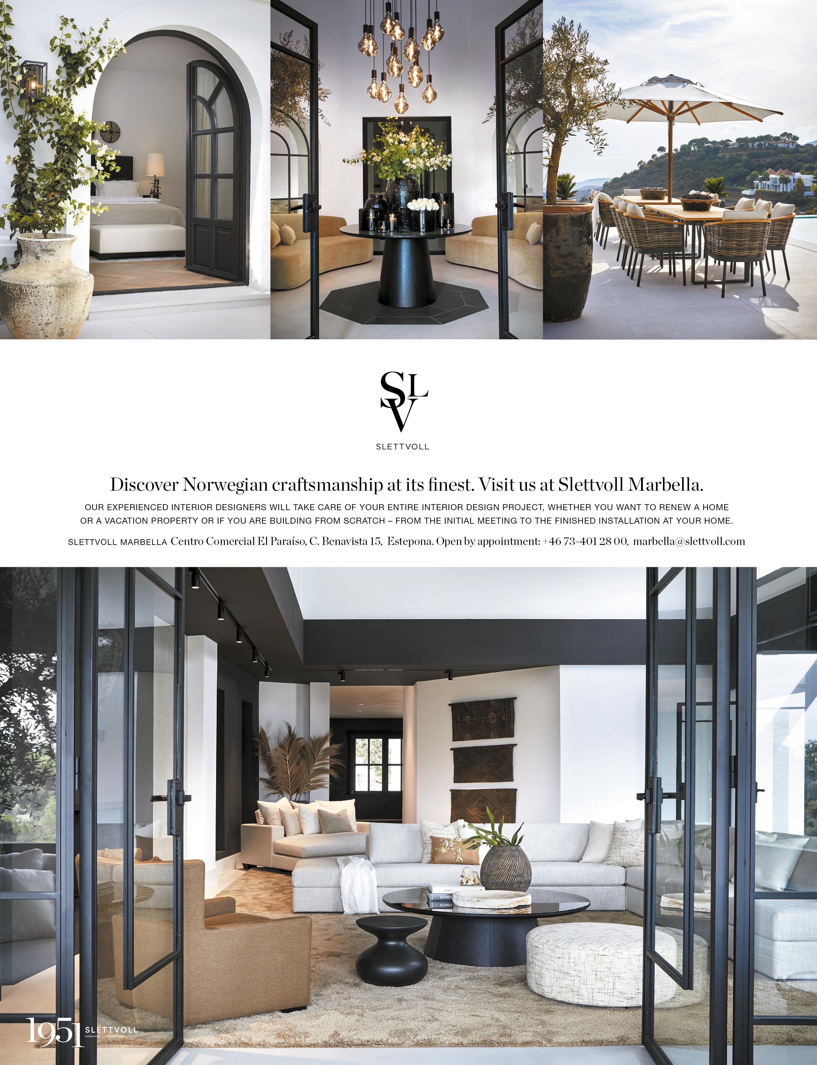 Left The elegant Marty collection by Slettvoll combines soft lines with sleek details in teak, durable wicker, and metal. Built to endure harsh weather conditions, it features dirt-resistant, machine-washable cushion covers. The Slettvoll showroom is located in C.C. El Paraíso in Estepona (www.slettvoll.com).