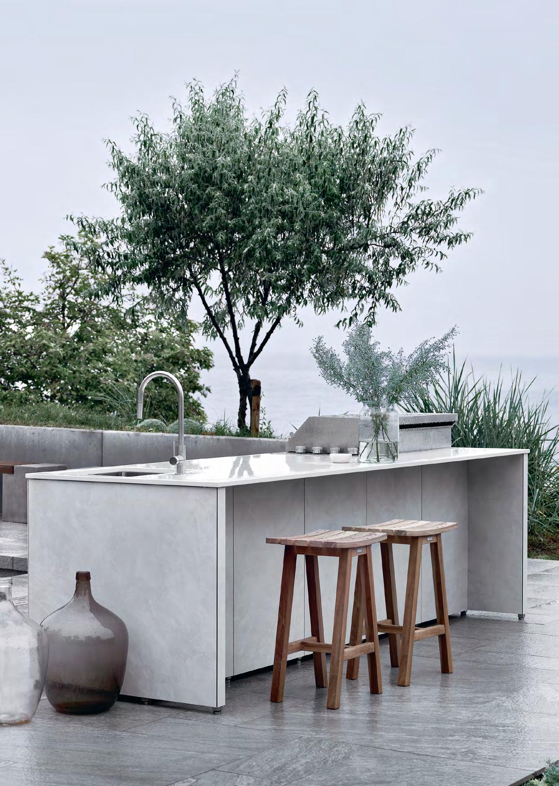Right The Albarium outdoor kitchen by Ballingslöv, created in collaboration with Cosentino, features durable Dekton surfaces in the “Albarium” shade. Launched at Stockholm Design Week, it offers pre-engineered, customisable modules for a refined outdoor cooking experience. Ballingslöv is situated in C.C. Plaza in Nueva Andalucía (www.ballingslov-marbella.se).