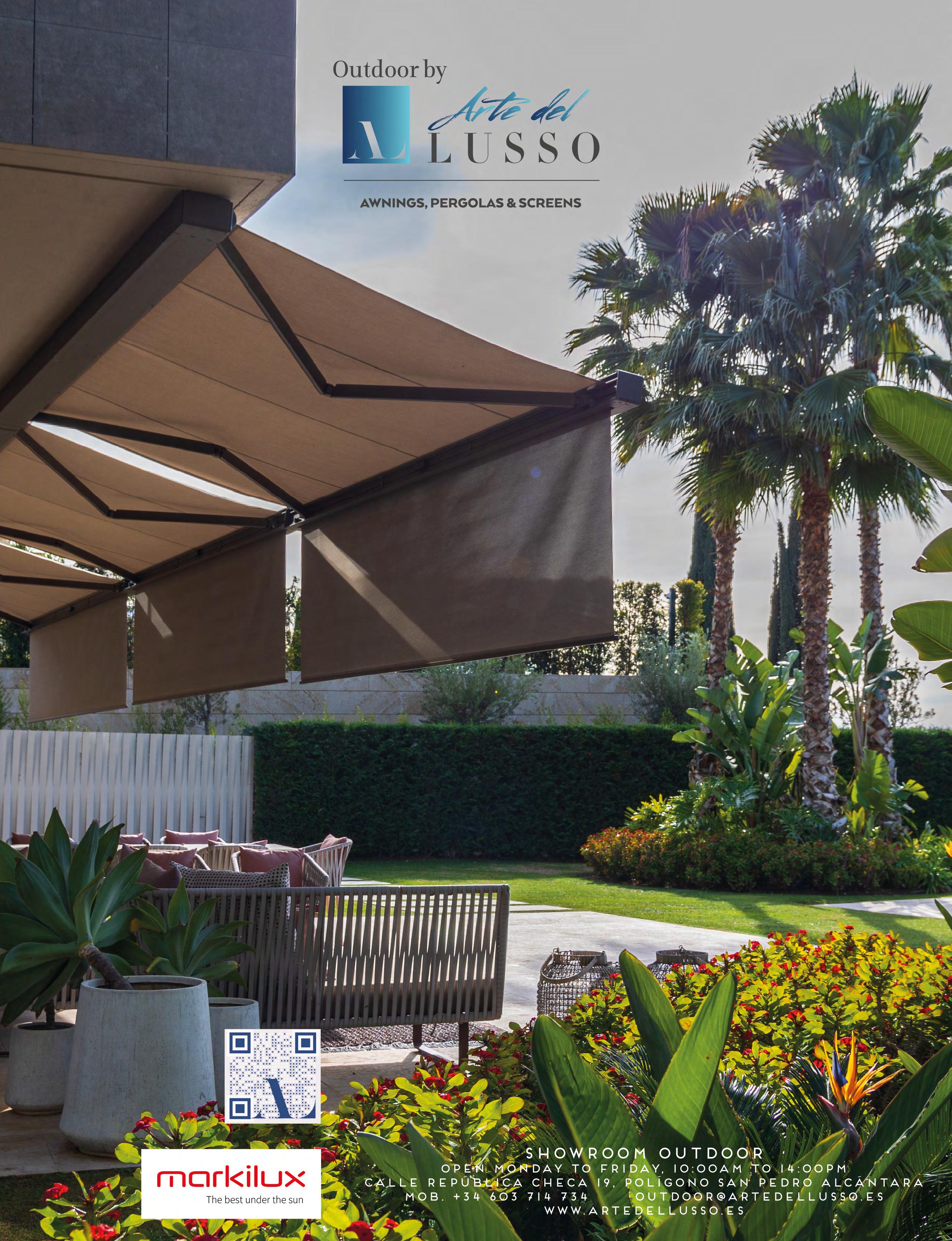 Above Sleek, functional, and timeless, the new Markilux pergola cubic embodies Bauhaus-inspired design with clean lines and modern elegance. Offering premium sun protection, ambient lighting, and optional heating, it transforms any outdoor space into a haven of comfort and style. Modular options and smart features like motorised height adjustment and solar-powered shadeplus make it as innovative as it is beautiful. Markilux is available exclusively by appointment at Arte del Lusso’s outdoor showroom in Pol. Ind. San Pedro (www.artedellusso.es).