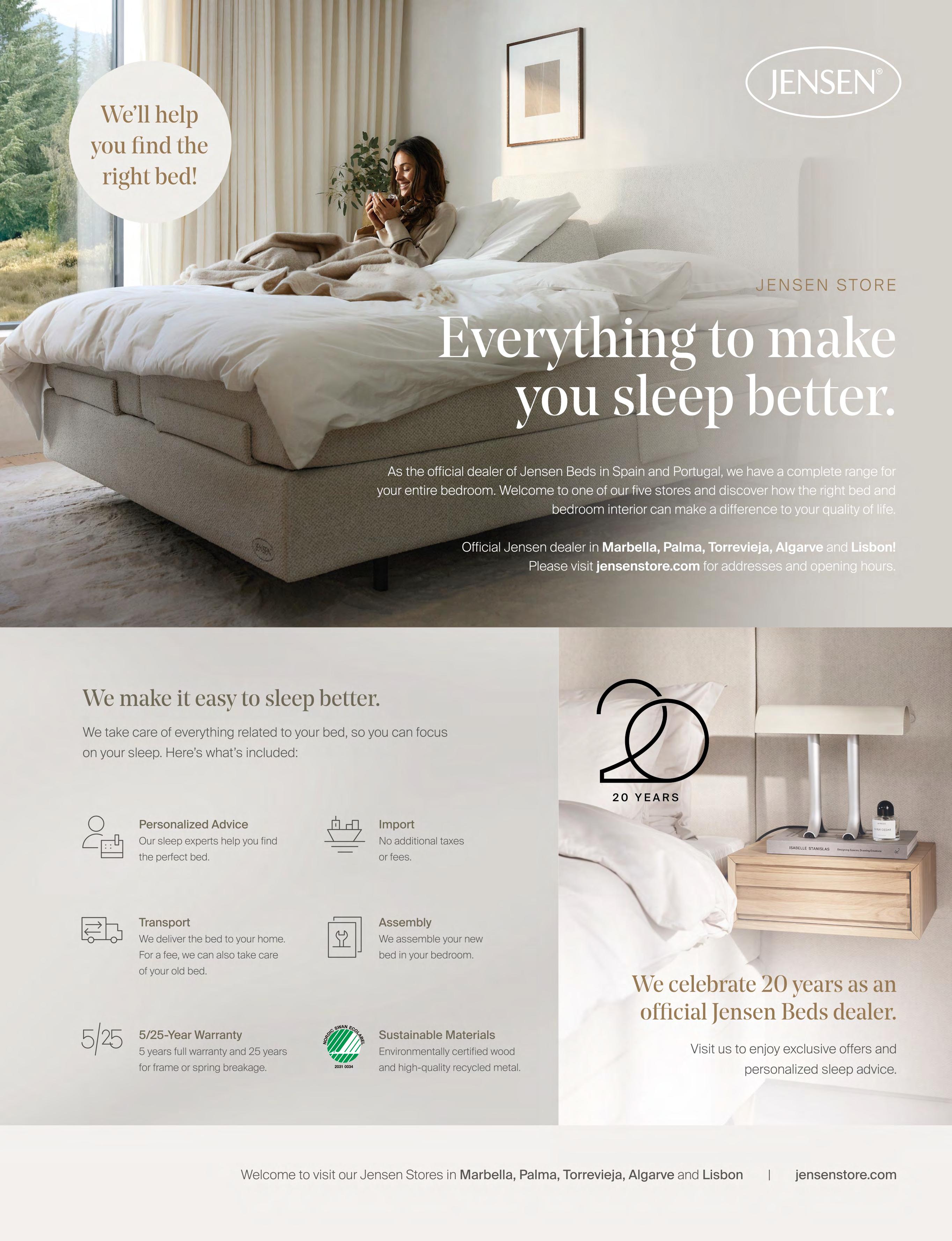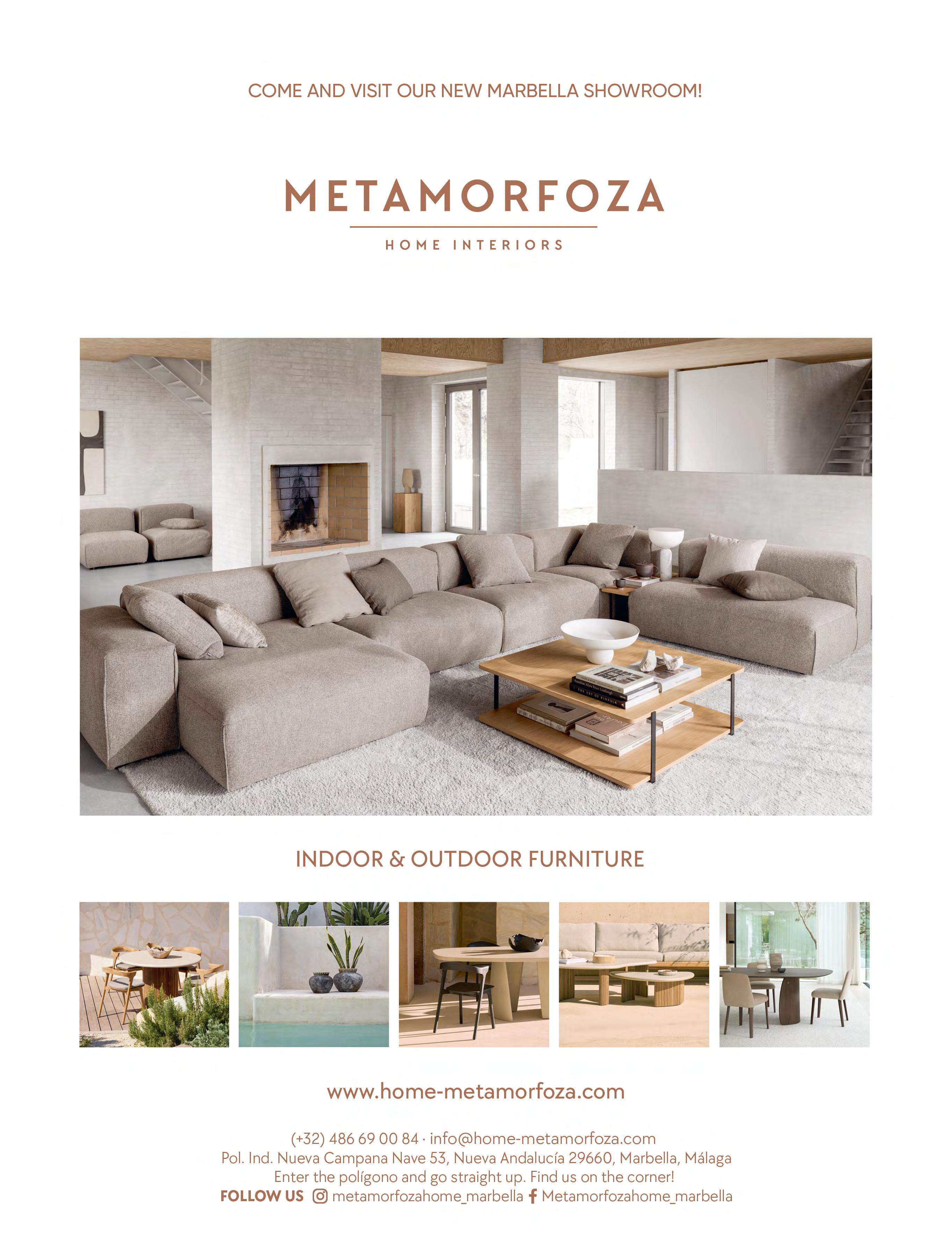 The publisher makes every effort to ensure that the magazine’s contents are correct, but cannot accept responsibility for the effects of errors or omissions. Home & Lifestyle Magazine (Media Fly SLU) reserves the right to refuse to publish any advertisement deemed detrimental to the best interests of the community or that is in questionable taste, and cannot accept responsibility for the claims, goods or services of advertisers. The views and opinions expressed by contributors in Home & Lifestyle Magazine (Media Fly SLU) do not necessarily reflect the views of the editor or the publisher. Products and prices mentioned are subject to change without prior notice. No part of this magazine may be reproduced or copied in any way without the prior written consent of Home & Lifestyle Magazine (Media Fly SLU).