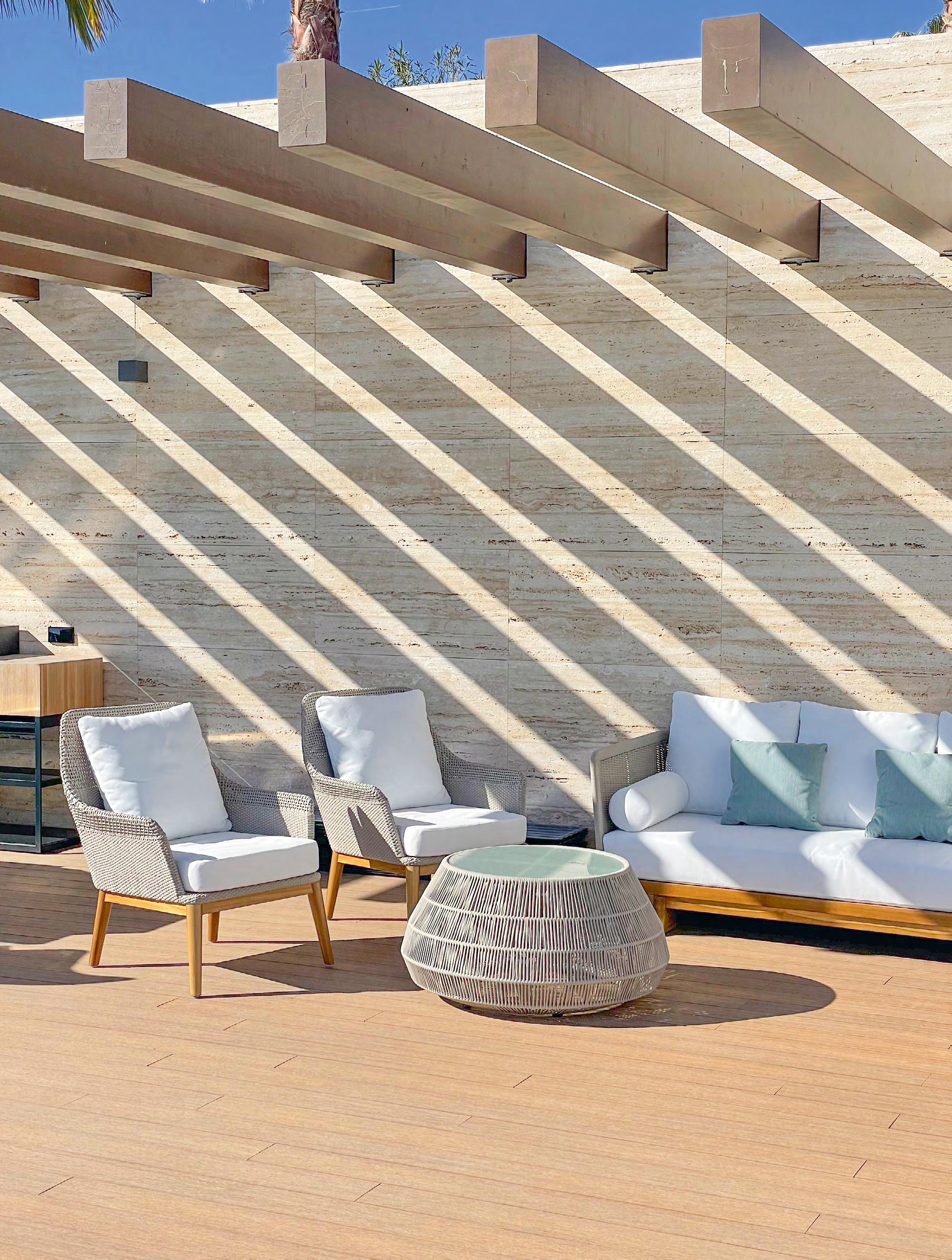 Below Sleek and expansive, the Deck collection embodies Gloster’s refined aesthetic. Crafted from solid plantation teak, its linear form draws inspiration from the teak decking of classic sailing yachts - an expression of timeless elegance, precision, and uncompromising craftsmanship. Gloster is available through Outdoor Concepts located in San Pedro de Alcántara (www.outdoorconcepts.es), Gunni & Trentino in Marbella Club (www.gunnitrentino.es), Ambience Home Design in C.C. La Poveda in Marbella (www.ambiencehomedesign.com), A Cielo Abierto in C. de Negocios Oasis on Marbella’s Golden Mile and C/ Policía Nacional 17 in Estepona (www.acieloabierto.net) and Alison Bethell Collins Interior Design situated in San Pedro de Alcántara (www.alisonbethellcollins.com).