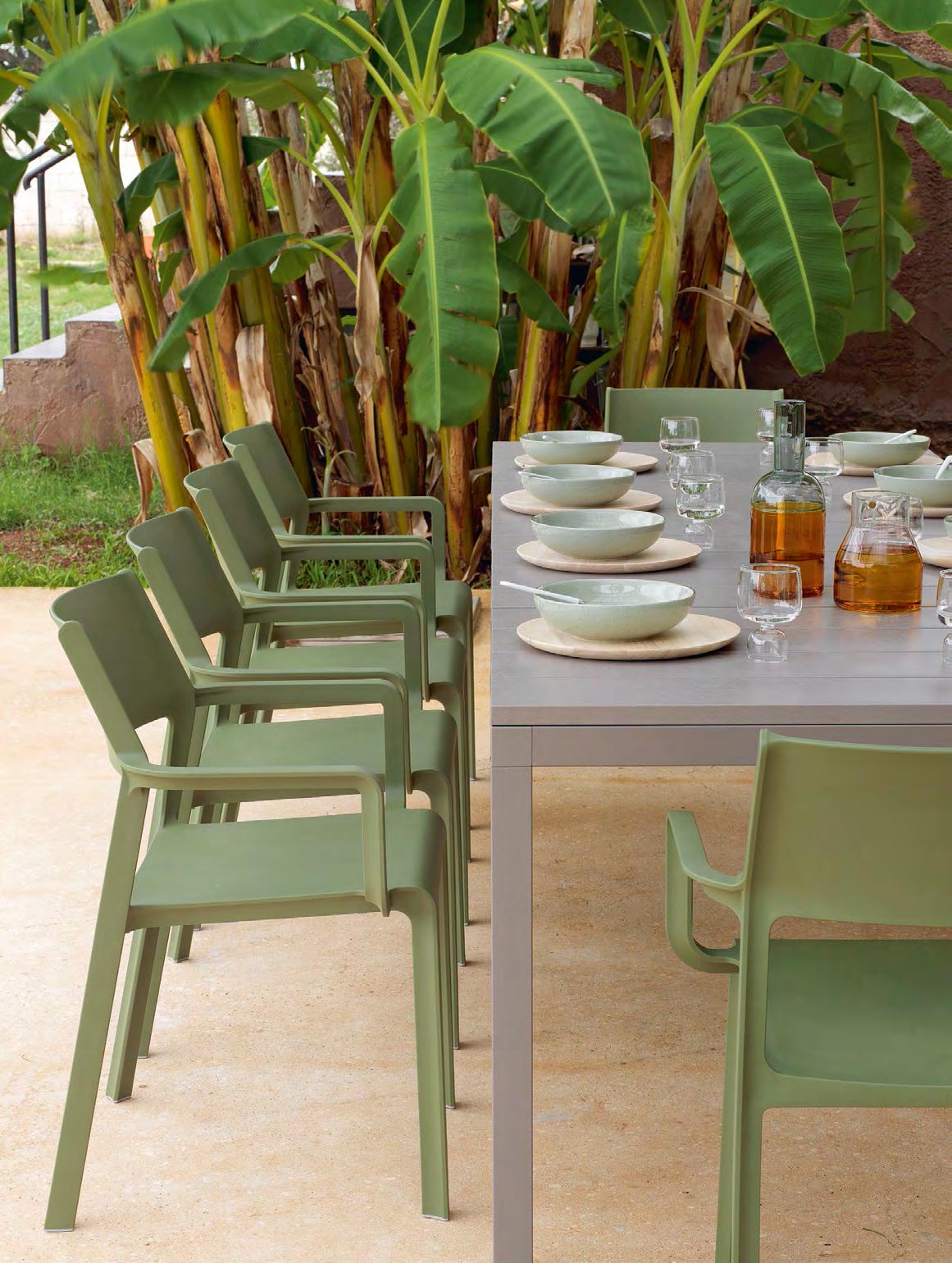 Top Left Nardi’s extendable Rio 210 dining table has a coated aluminium slatted top available in tortoise, white and anthracite colourways. The Riva monobloc chair comes in a wide range of colours and is made from fibreglass polypropylene resins with UV additives. Nardi is available from Fernando Moreno situated on the Ctra. de Ronda in San Pedro de Alcántara (www.fernandomoreno.es) and De Tropen on the Autovía del Mediterraneo A7, Exit 953, Vélez-Málaga, or buy online at www.detropen.es