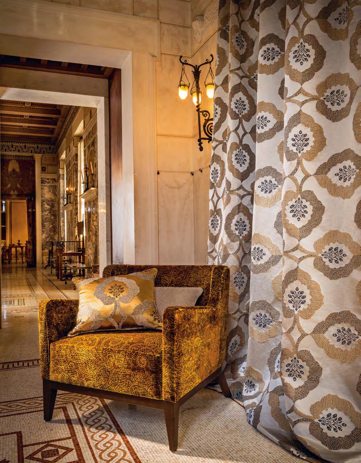 Right The Savine collection is a contemporary range of decorative prints and fabrics for stylish indoor-outdoor living. Featuring new marbled textures and classic Designers Guild favourites, it offers practical yet elegant options for conservatories, gardens, summerhouses, and poolside settings. Designers Guild is available from Cortidea on the Mijas Road (www.cortidea.es), Ambience Home Design in C.C. La Poveda in Marbella (www.ambiencehomedesign.com), GC Studio in C.C. Le Village in Marbella (www.gc-studio.es), as well as Arte del Lusso (www.artedellusso.es) and Alison Bethell Collins Interior Design (www.alisonbethellcollins.com), both situated in San Pedro de Alcántara.