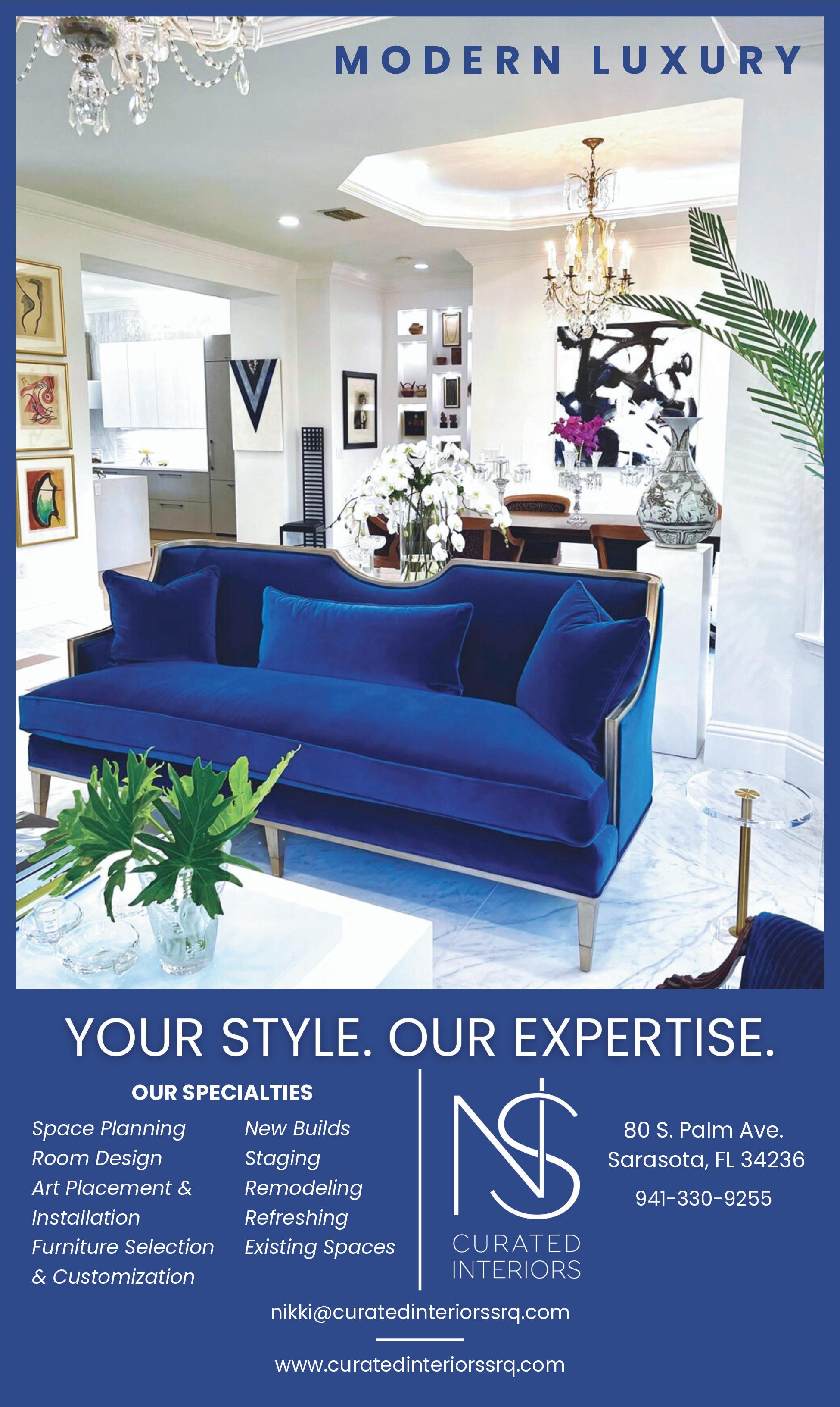 Angela Rodriguez Interiors is an award-winning, full-service interior design firm based in the Sarasota area since 2009, specializing in constructionintensive and full-furnishing projects. We’re on a mission to create remarkable places to thrive: at home, at work, and out in the world. You’ll find the Angela Rodriguez Interiors team in that magic place where wild dreams meet thoughtful planning, where architecture and decor intersect, and where outstanding design meets conscious luxury. Every day we help our clients and their families create their ideal homes, custom designed for living the Florida lifestyle to its absolute fullest. We are proud to be the interior design firm behind the project, Orchid Cove, featured here in this issue of Home & Design magazine.