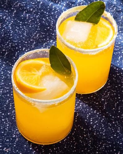 Bright citrus and a splash of color make this drink look like the morning sky in a glass.