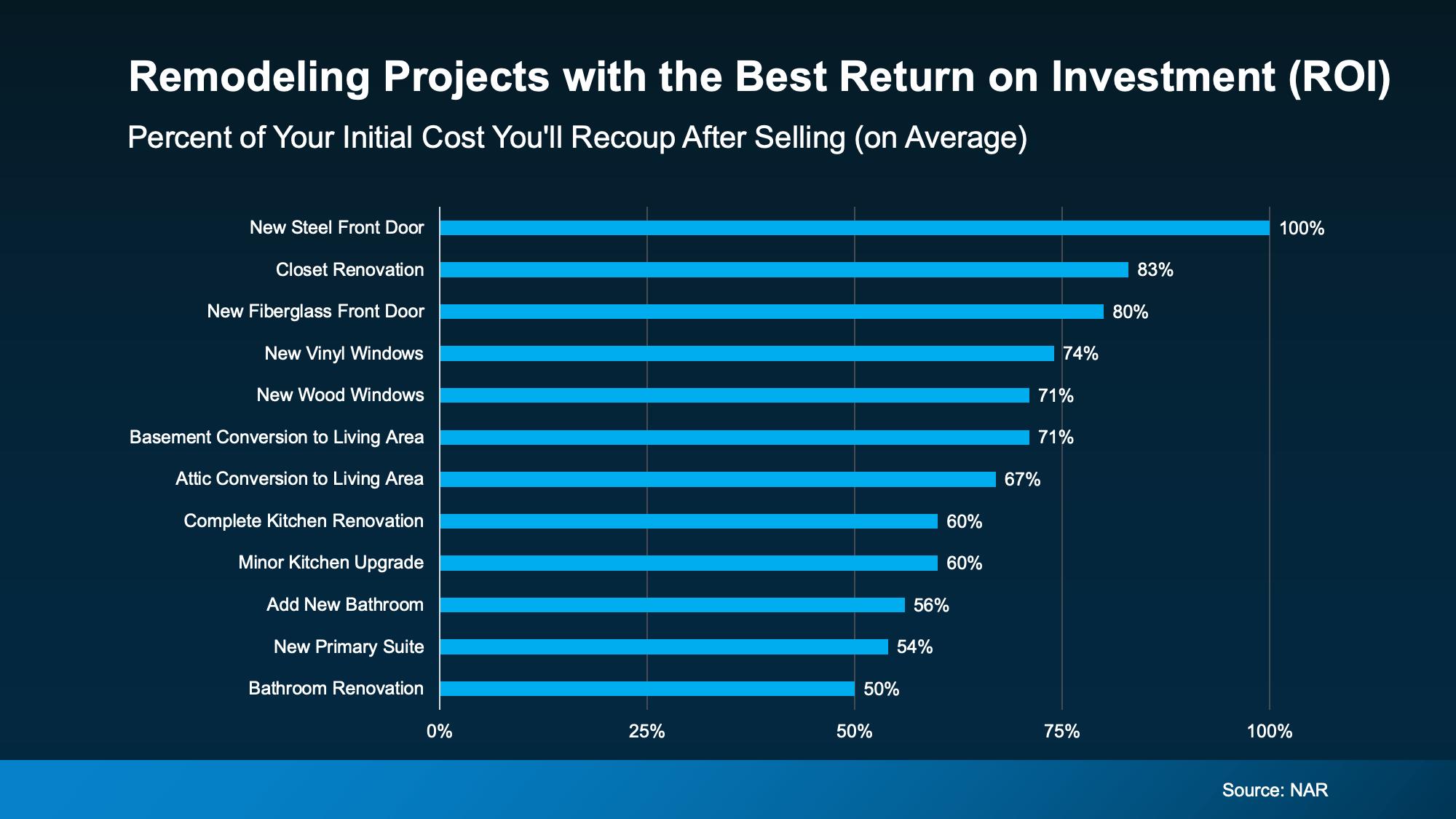 As you can see, there’s a wide range of projects on that list. Yes, some are bigger-ticket items, like kitchens or baths. But others are smaller updates with surprisingly strong ROI.