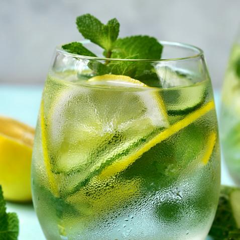 Muddle the cucumber slices and mint in the bottom of a glass to release their flavor. Add lime juice and sweetener, then fill the glass with ice and top with sparkling water.