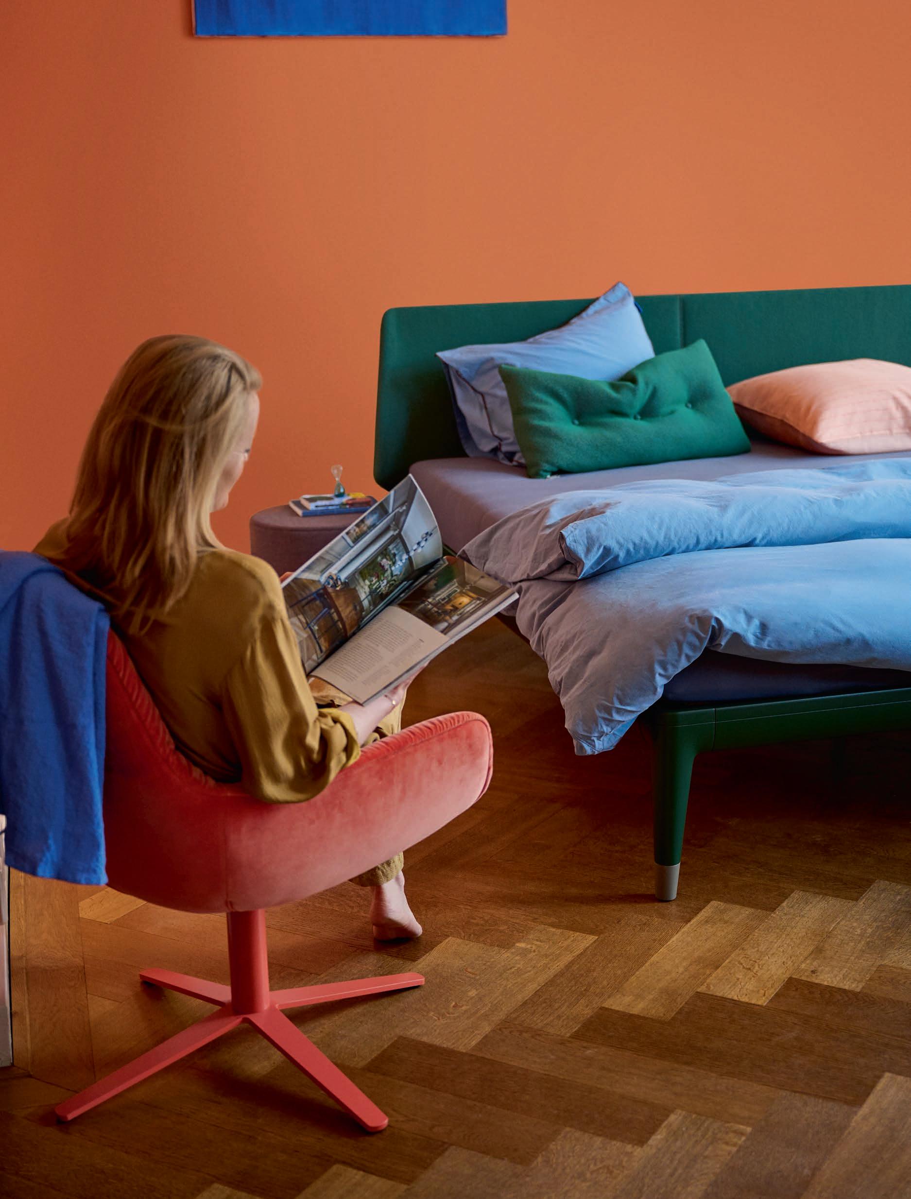 Onze teams van productontwikkeling, onderzoek en marketing werken al sinds jaar en dag samen met gerespecteerde ontwerpers. Een samenwerking kan bestaan uit het ontwikkelen van een bed of een textielcollectie, maar ook het gezamenlijk uitvoeren van een kleurenstudie. Altijd is de samenwerking gebaseerd op een gezamenlijk streven om elegante, goed ontworpen en goed doordachte producten te maken die bijdragen aan een uitgeruste wereld.