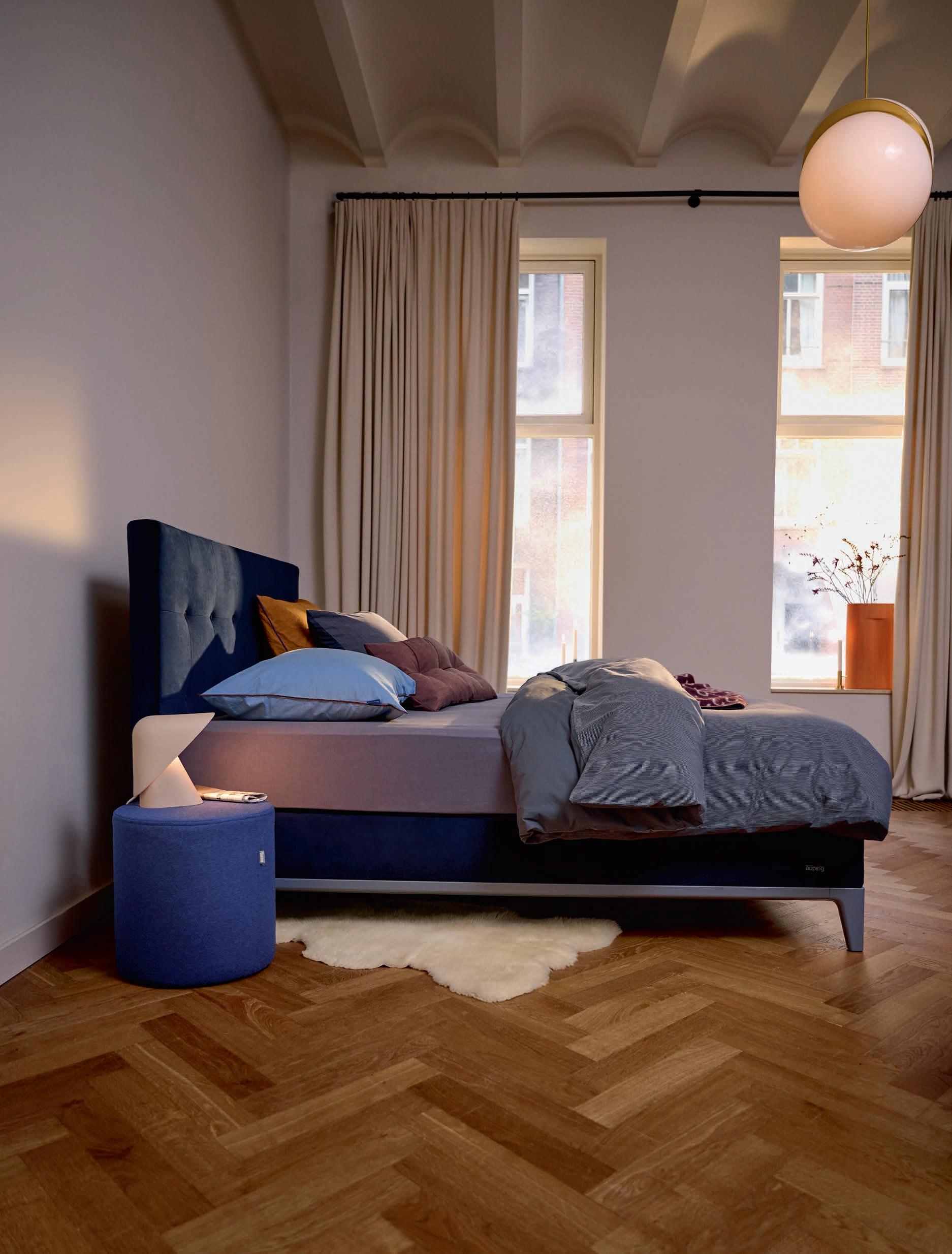 De Criade boxspring kan gestoffeerd worden met een van de 95 verschillende stoffen uit de Auping stoffencollectie. Zie pagina