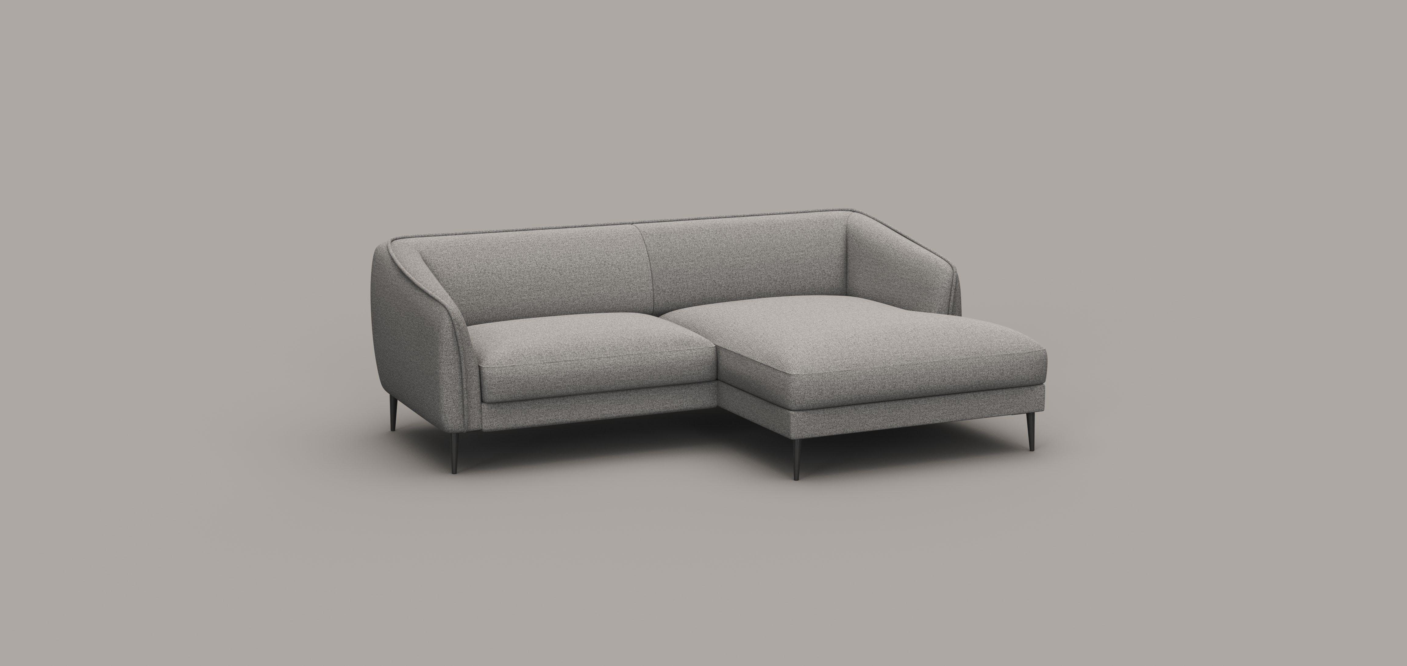 Loano sofa, combination 0351, 1,5 seater with chaiselong and pouf, Bormio 1220 Soft Grey