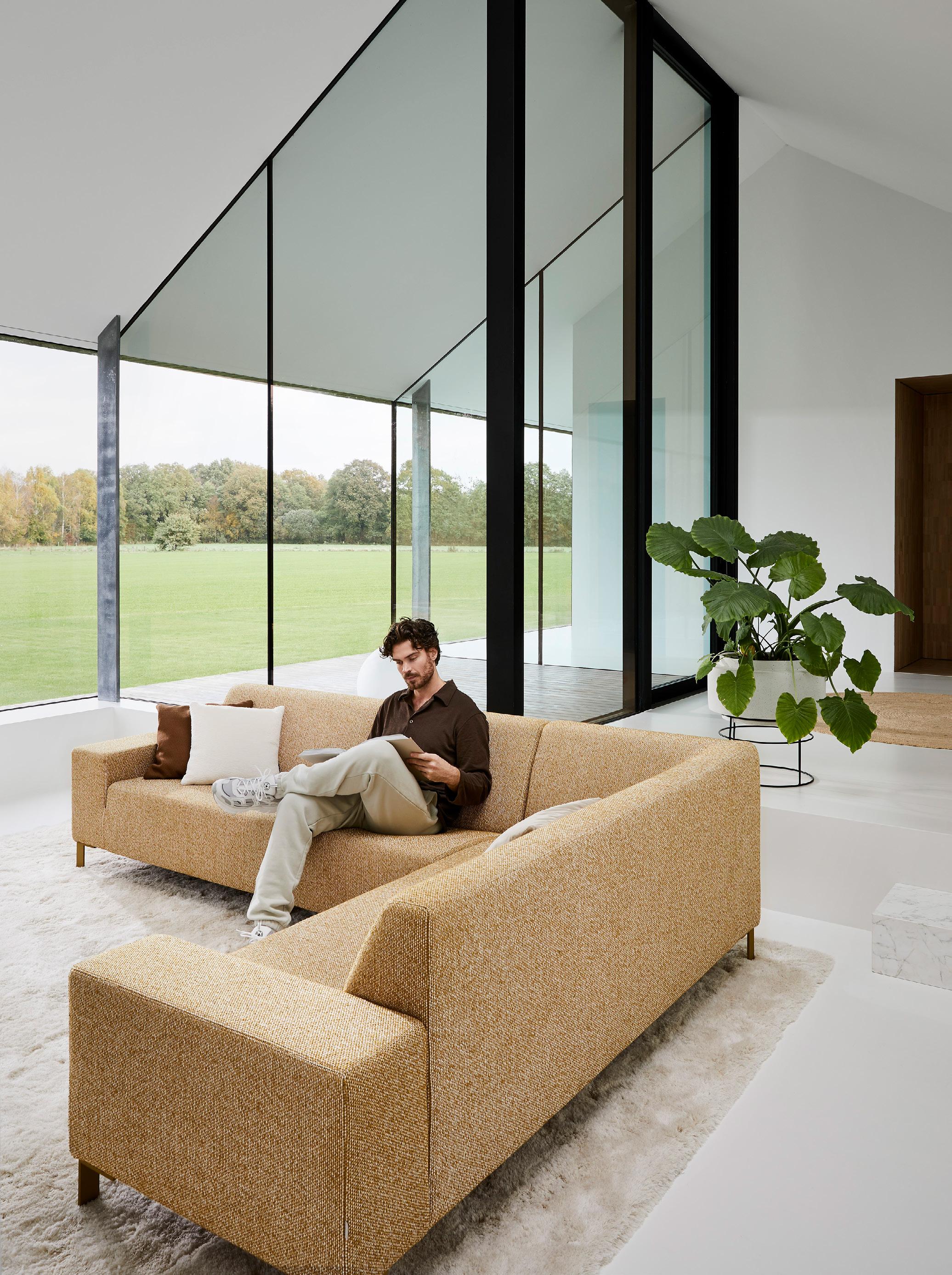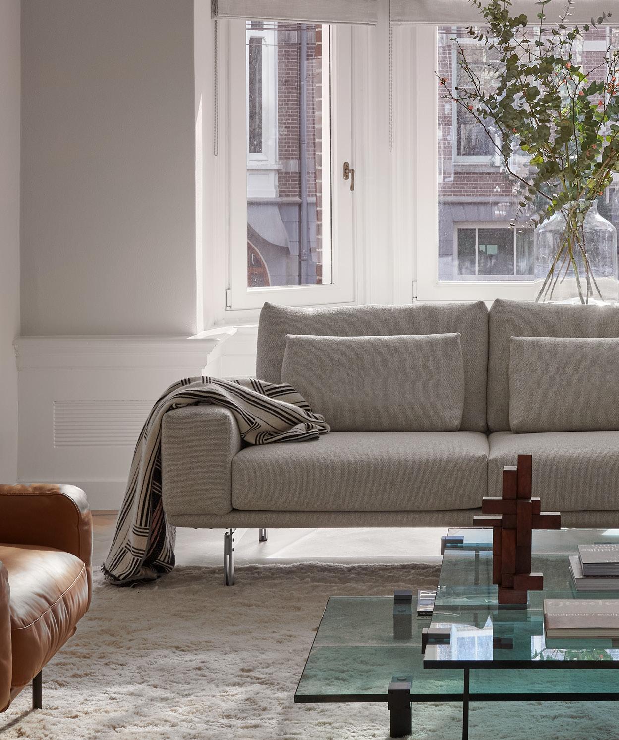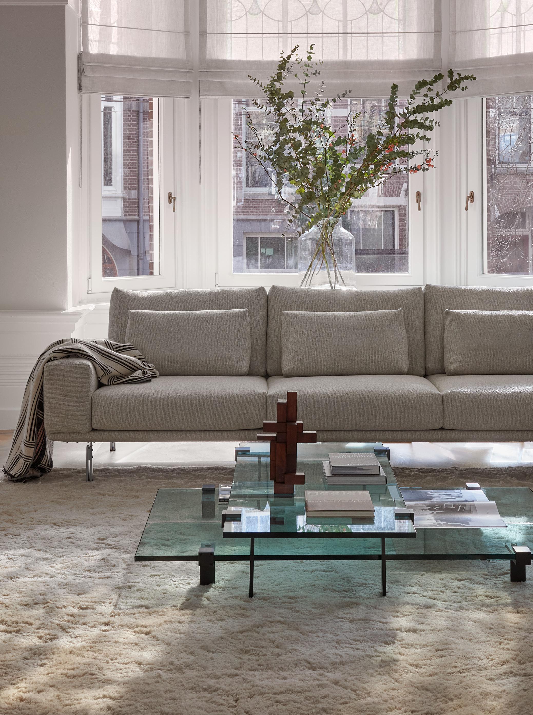 The Float sofa is the new centrepiece of the Gelderland collection. With its sleek design, excellent seating comfort, and durable manufacturing, it guarantees a lifetime of quality. The unique aluminium frame offers numerous possibilities for various configurations. By combining the deeper lounge version with the less deep model, a multifunctional sofa suitable for the whole family is created.