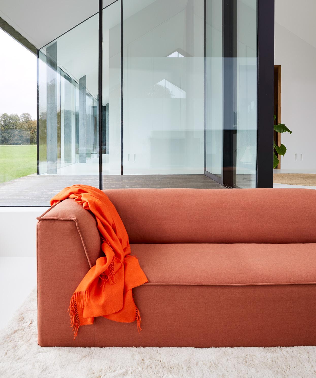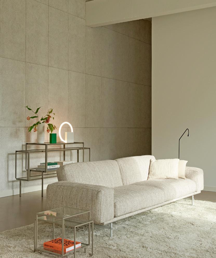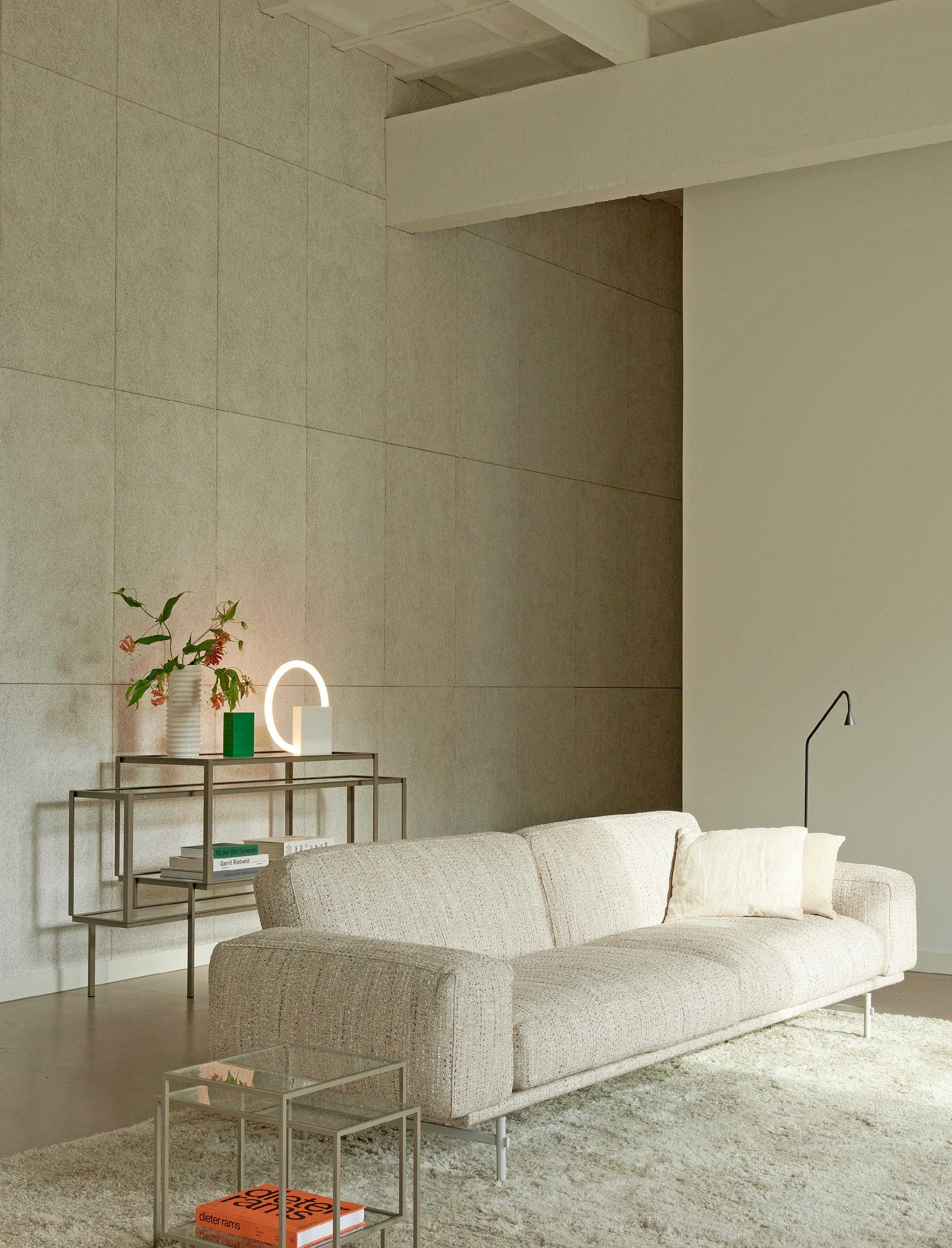 De 10010 Prime is in 2020 ontworpen door Studio Truly Truly. De bank is comfortabel en door de dikke, bijna wulpse zitting oogt deze zacht en toch architecturaal. De armkussens hangen net iets over de rand van het slanke onderstel, wat het ontwerp karakter geeft.