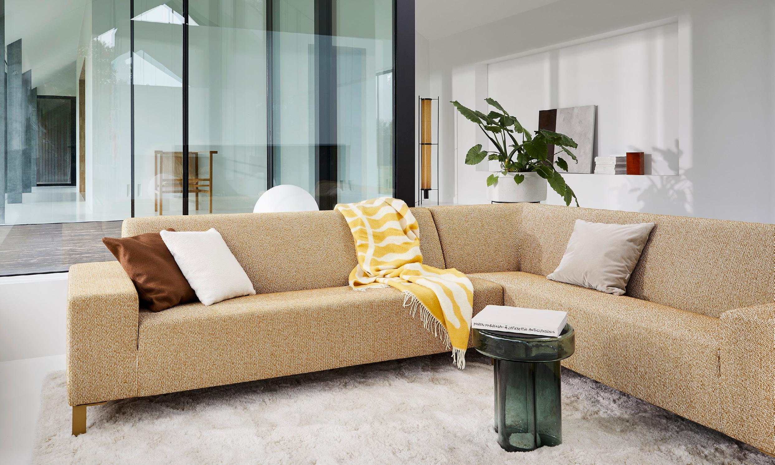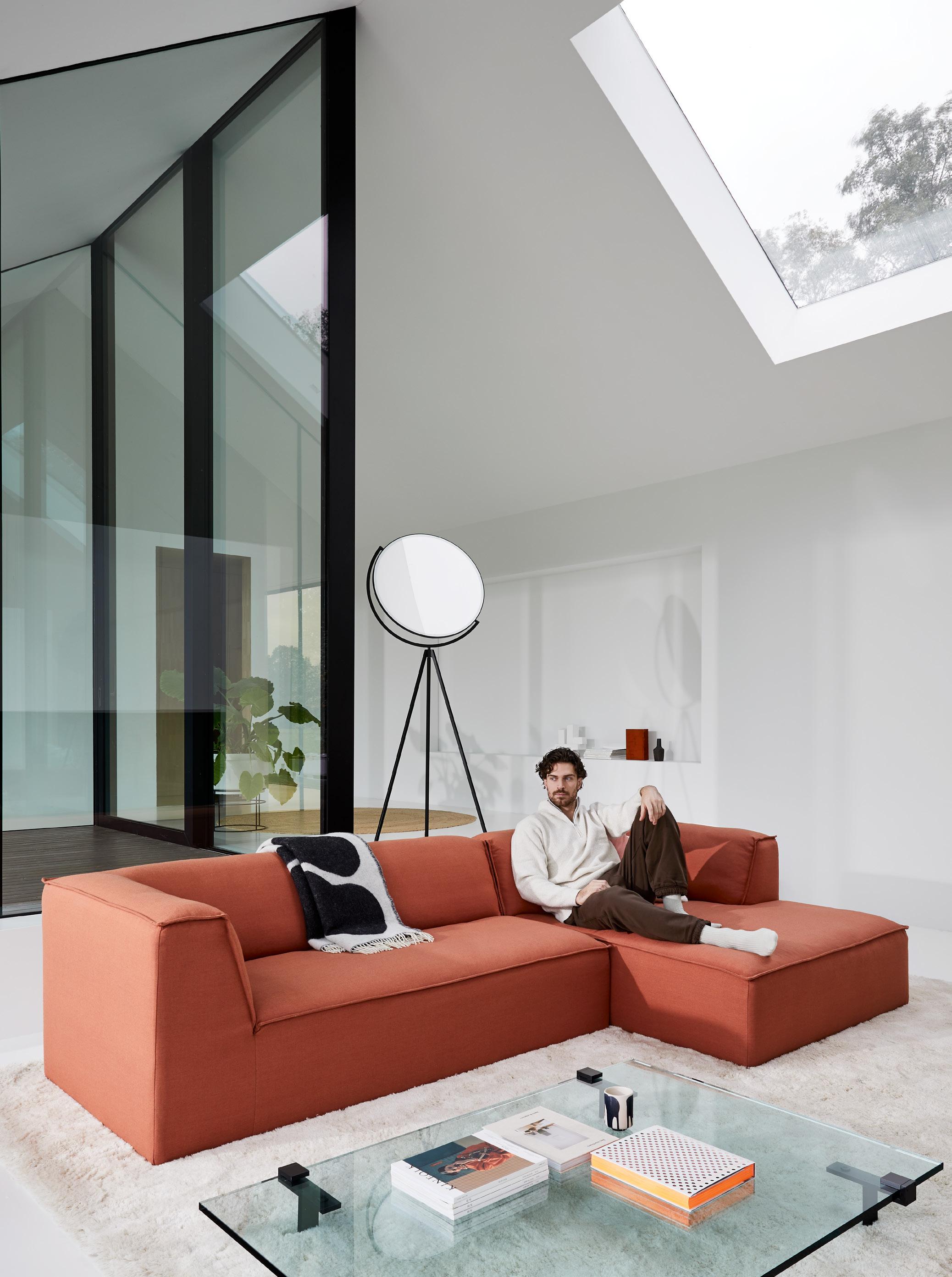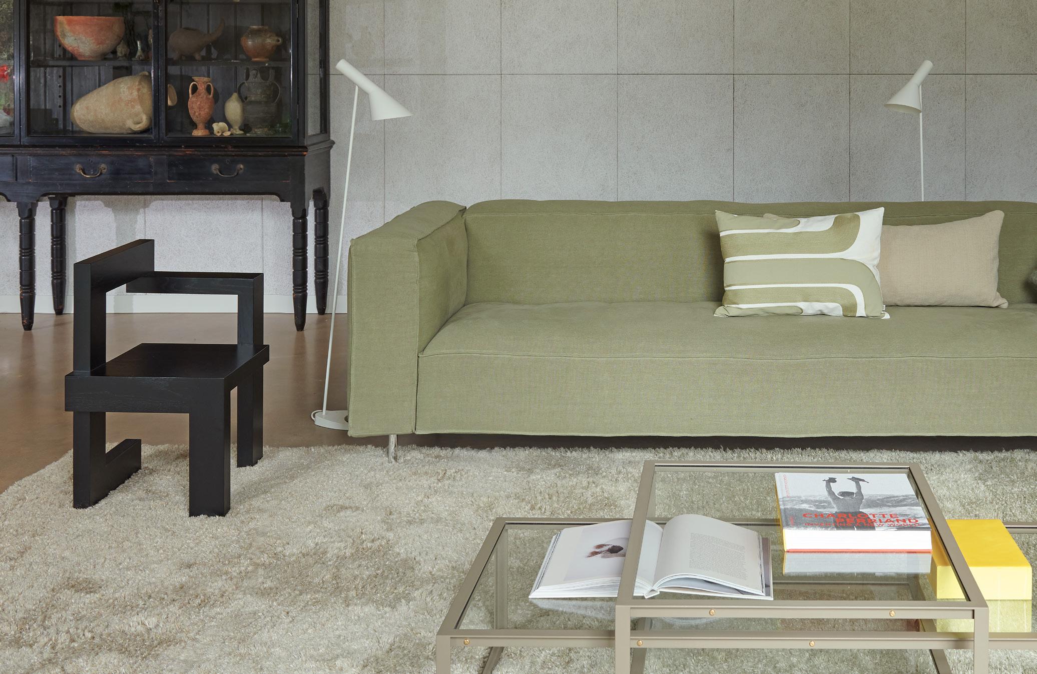 De 10010 Prime is in 2020 ontworpen door Studio Truly Truly. De bank is comfortabel en door de dikke, bijna wulpse zitting oogt deze zacht en toch architecturaal. De armkussens hangen net iets over de rand van het slanke onderstel, wat het ontwerp karakter geeft.