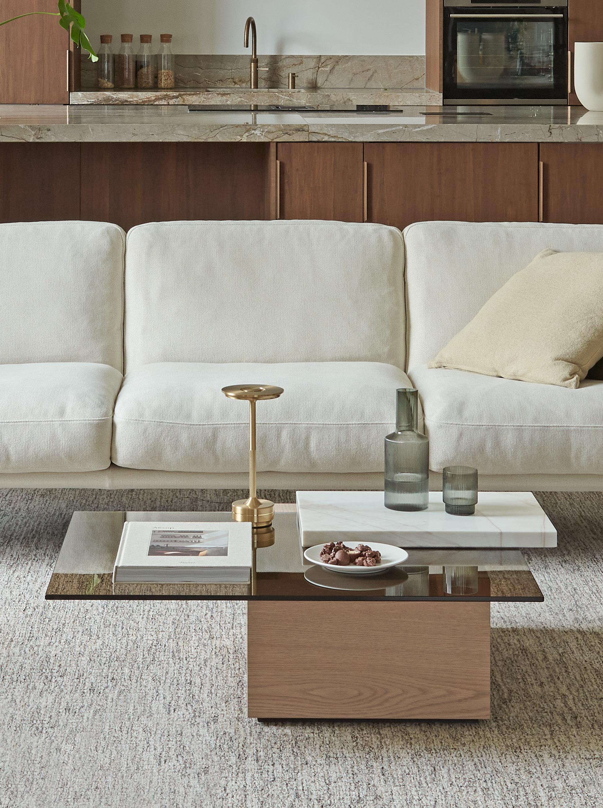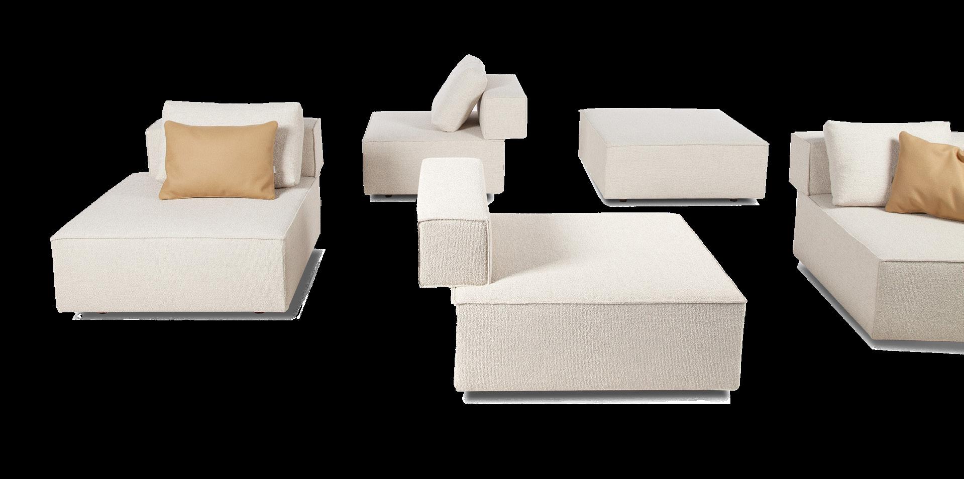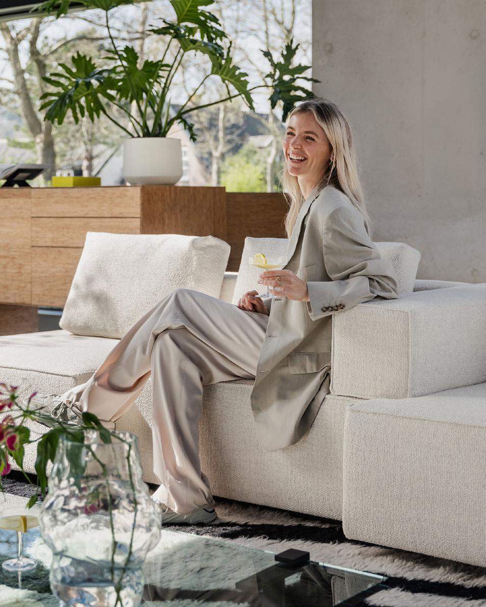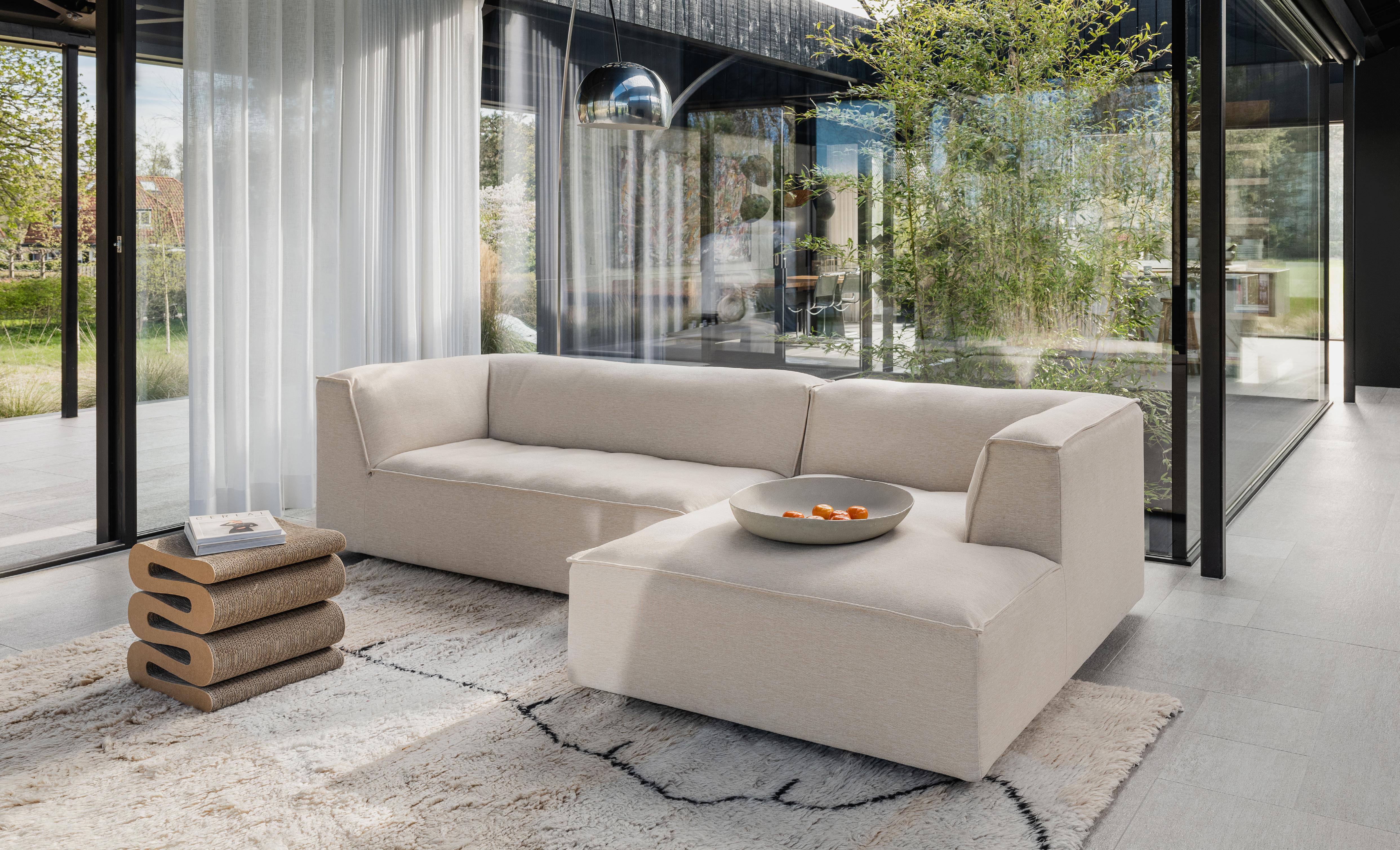 Door de diepere loungeversie te combineren met de minder diepe uitvoering ontstaat een multifunctionele bank die geschikt is voor het hele gezin.