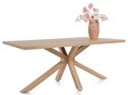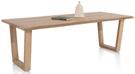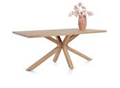 tafel Nyborg verkrijgbaar in diverse maten vanaf 949,230x100cm met recht blad en V-poot hout 1249,- | stoel Mia vanaf 249,- | armstoel vanaf 299,- (afgebeeld in stof Livigno)