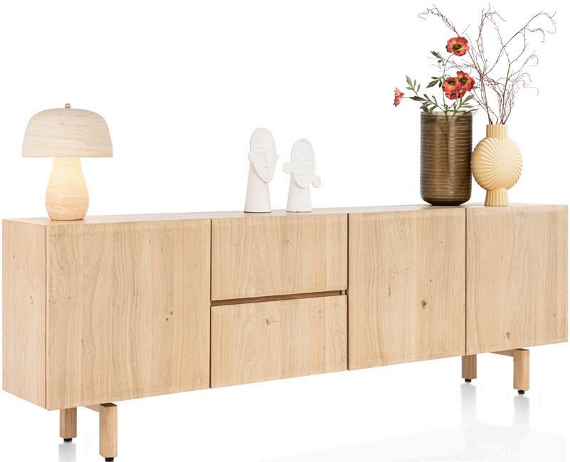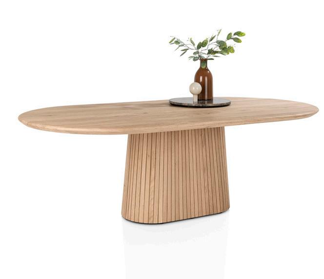 De kasten uit de Azulo-collectie passen, met hun lichte eikenfineer, minimalistische greeploze design en luxe afgeschuinde deuren, perfect bij de ronde vormen van de massief eikenhouten tafels. De veelzijdige roomdividers Azulaar maken de luchtige, gebalanceerde Japandisfeer compleet!