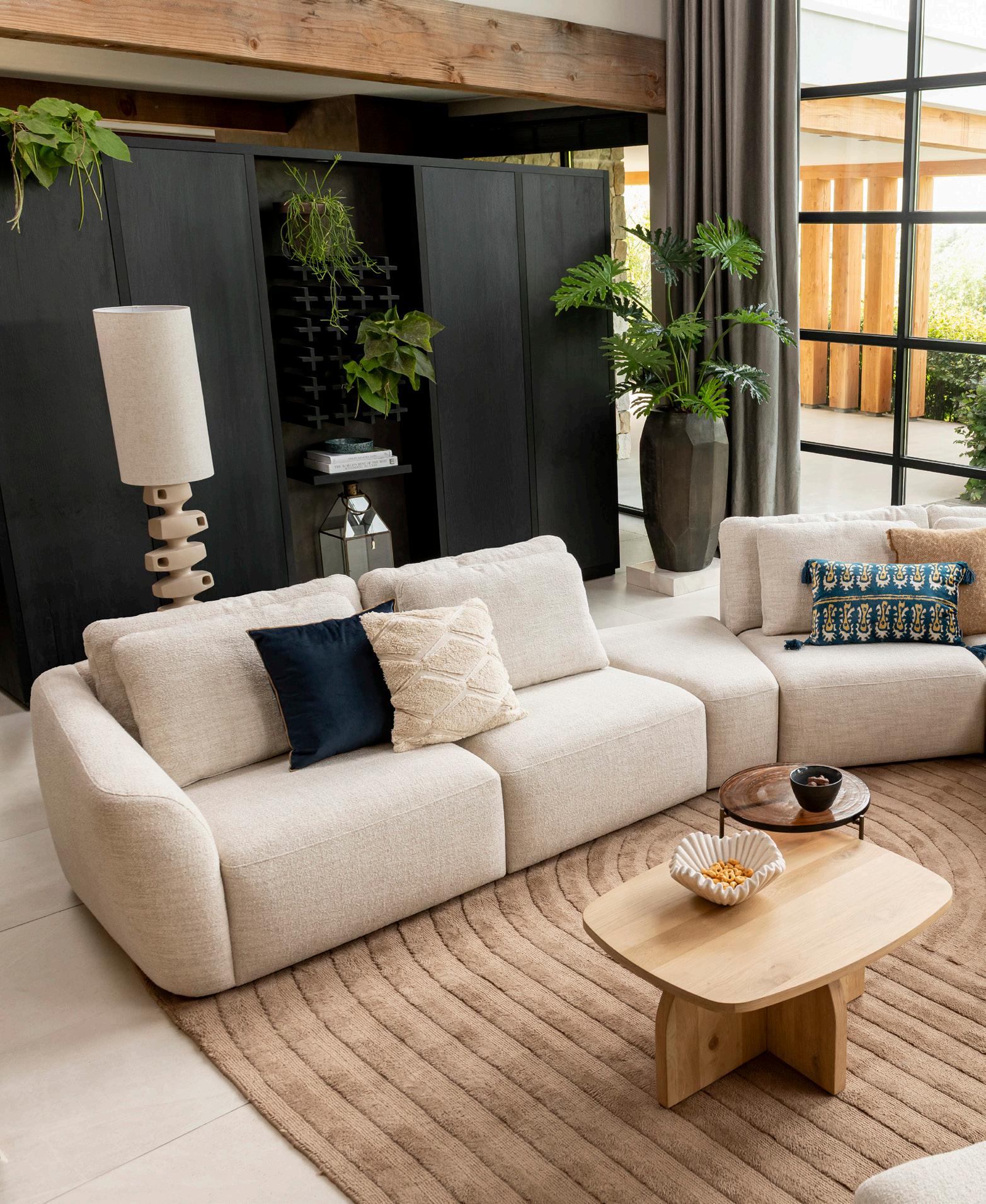 dressoir, 220cm 1499,- | elementenbank Olvera bestaande uit: longchair, 1-zits zonder armen, triangel element met rug en curved ottomane vanaf 3748,- (afgebeeld in stof Enzo) | 1-zits arm links 849,modulaire elementenbank verkrijgbaar in diverse uitvoeringen salontafel 120x60cm 699,- | ø 80cm (HPL-blad) 549,- | bijzettafel ø 45cm 349,- | ø 60cm 399,-