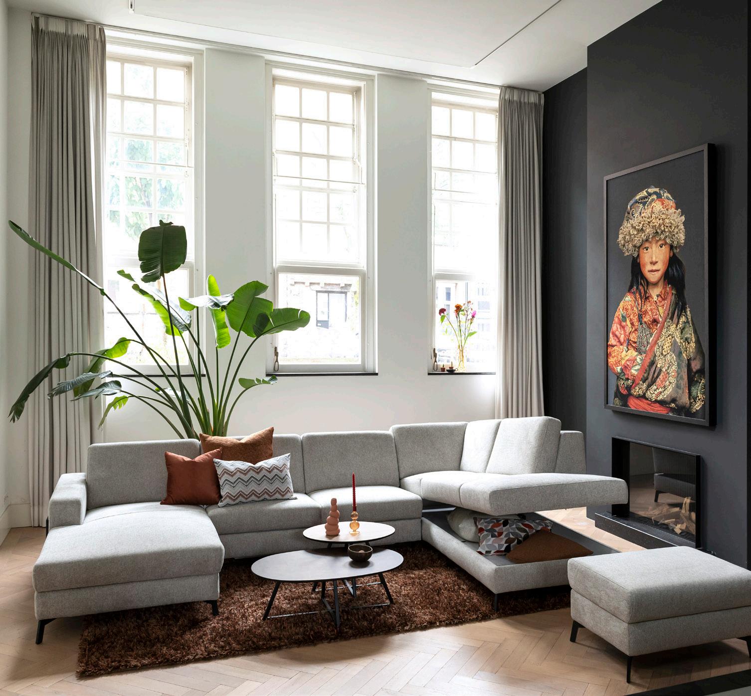 hoekopstelling Napels bestaande uit: longchair, 2,5-zits en grote ottomane vanaf 3447,hoofdsteun vanaf 159,- | poef vanaf 499,(afgebeeld in stof Vada) | bijzet-/salontafel Avalon vanaf 119,- | bank verkrijgbaar in diverse uitvoeringen