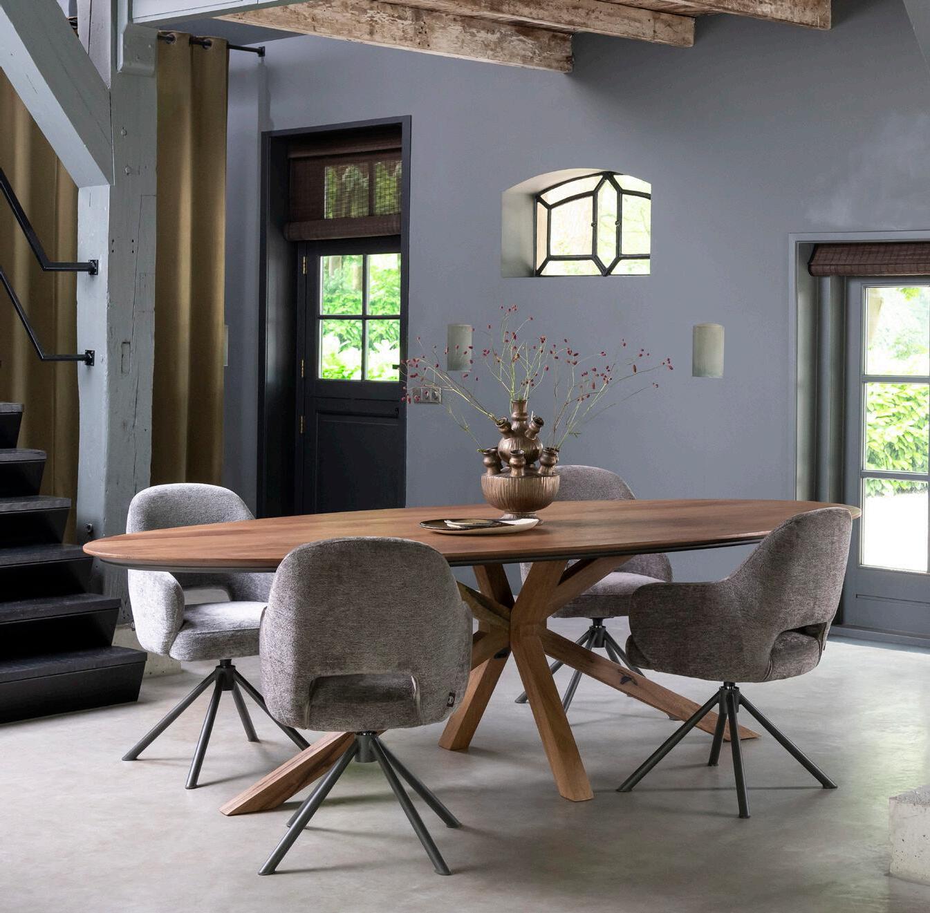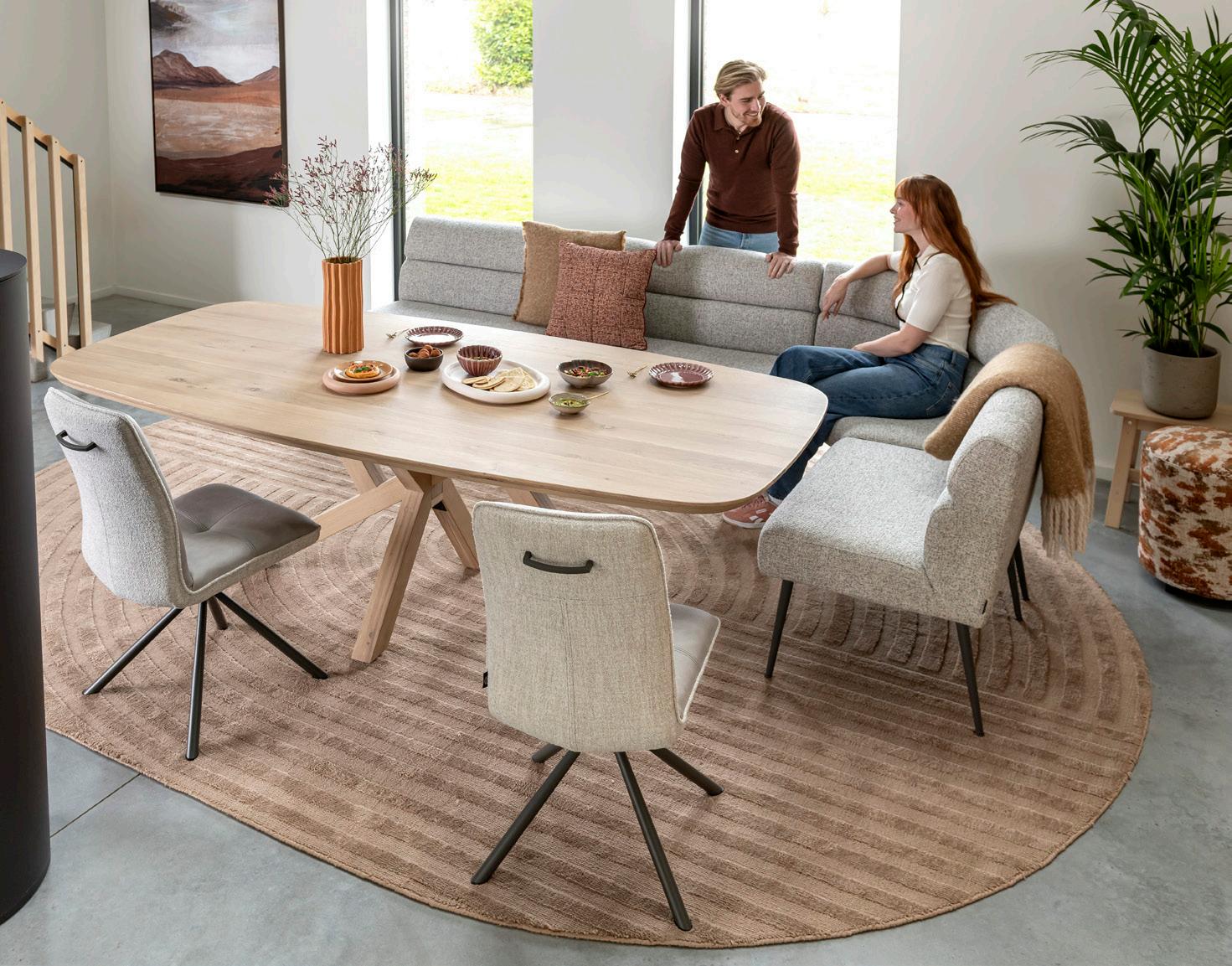 INTRODUCTIEPRIJS vanaf 799,- 699,- | ovale tafel 240x105cm met eikenhouten blad en centrale kruispoot 1399,- 1299,- | stoel Bovina vanaf 199,- | eetkamerbank vanaf 799,- (afgebeeld in stof Luton) ronde tafel Caletta ø120cm met eikenhouten blad en centrale kruispoot 999,- 899,- | armstoel Pippa INTRODUCTIEPRIJS 199,- 179,-