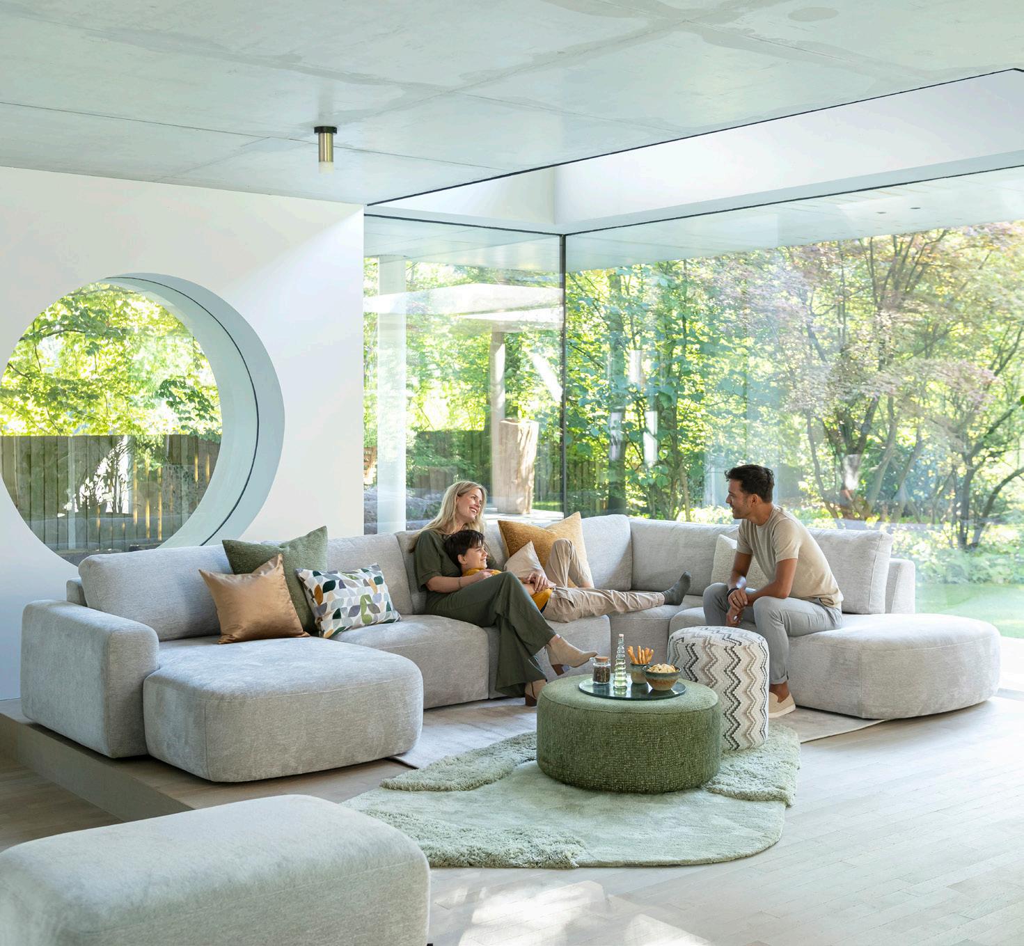 LINKERPAGINA: modulaire elementenbank Olvera bestaande uit: longchair, 1-zits small zonder armen, triangel element met rug en curved ottomane vanaf 3698,- 3298,- (afgebeeld in stof Enzo) | 1-zits arm links vanaf 849,- 749,- | verkrijgbaar in diverse uitvoeringen | salontafel Ravello 120x60cm 699,- 649,- | ø 80cm (HPL-blad) 549,- 499,- | bijzettafel ø45cm 349,- 319,- | ø60cm 399,- 349,- | buffetkast Ravello met ledverlichting 2399,- 2199,- | RECHTERPAGINA: stoel Gavin 229,- 199,- | dressoir Ravello, 220cm 1499,- 1349,- | ronde tafel Ravello, ø140cm 1499,- 1299,-