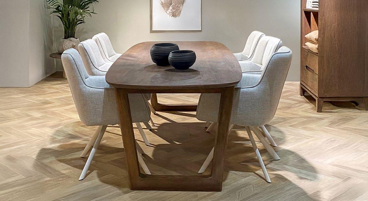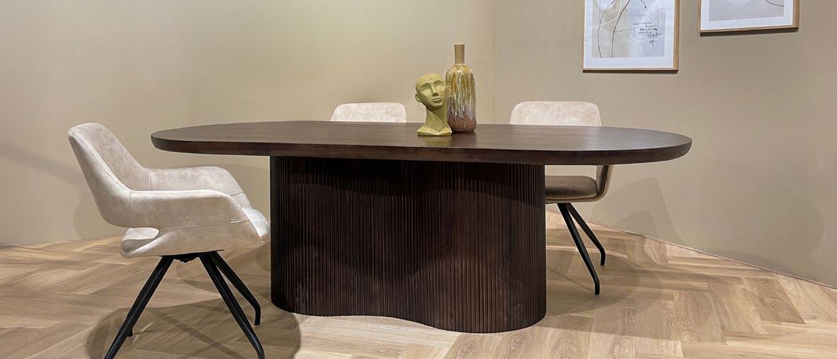 De eettafels Jesper en Rocky combineren stijl en duurzaamheid met een hardhouten blad en een robuuste zwartstalen spinpoot. Beide tafels zijn verkrijgbaar in rond en ovaal, terwijl de Jesper daarnaast ook in een elegant Deens ovaal design komt. Of je nu kiest voor een speelse of juist een stoere uitstraling, de Jesper en Rocky passen perfect in zowel moderne als industriële interieurs.