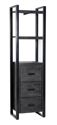 Alle meubels van de Norris Collection worden vervaardigd uit duurzaam hardhout, gecombineerd met zwart staal. Het geborstelde hardhouten oppervlak geeft een licht ruwe textuur aan het meubel. De donkere en moderne afwerking combineert robuustheid met een stijlvolle twist.