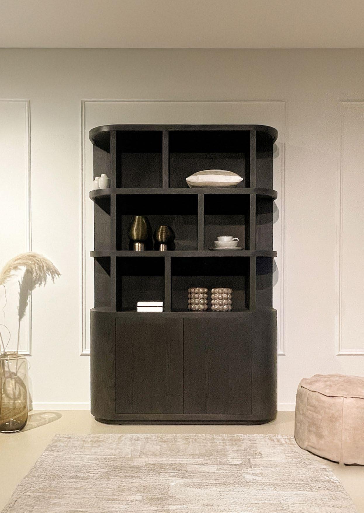 Alle Noor Collection kasten vertrekken van een ellipsvorm. Zij zijn rondom voorzien van een verticaal lijnenspel, een knipoog naar retro. Met greeploze draaideuren die volledig in het ontwerp opgaan. De lichtere variant heeft een warme uitstraling en de ‘walnut’ finish geeft een trendy chique touch aan je interieur.