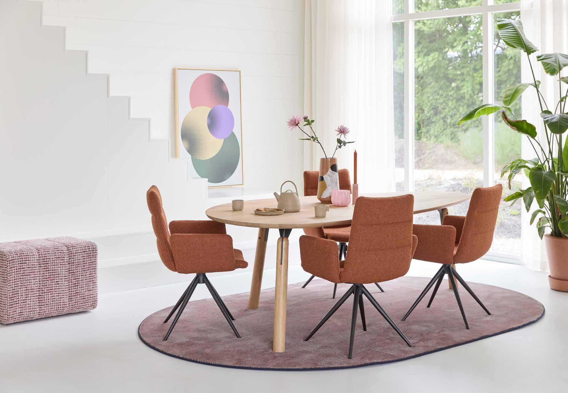 Een eetkamerbank biedt extra zitplaatsen, oogt gezellig en is ruimtebesparend tegelijkertijd. Met Dinner Talk selecteert u uw ideale opstelling van A tot Z zelf – in technisch en cosmetisch opzicht - van de poten en de armen tot de romp en de rug en zelfs het zitcomfort. Vraag uw dealer om meer informatie!