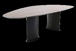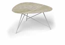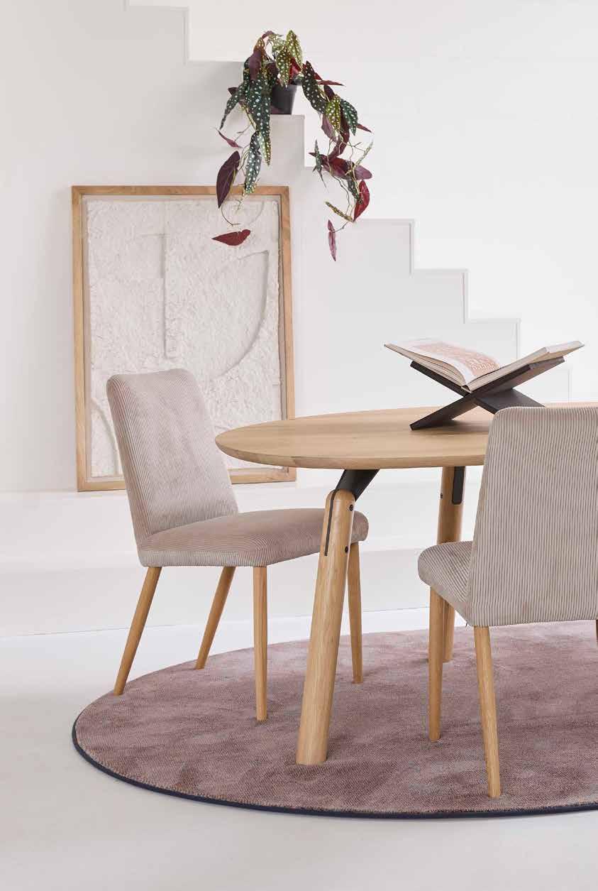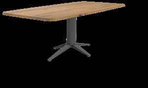 Tafel Trinity is een perfect samenspel van hout en metaal, van symmetrie en geometrie. Ontworpen als driepoot met een asymmetrisch blad in Kiezelvorm, maar ook verkrijgbaar in een meer traditionele uitvoering met vier poten en een recht, ovaal, platovaal of rond blad.