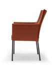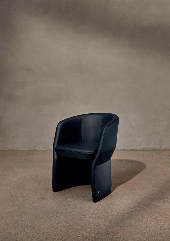 Whether used as an additional seat next to the sofa in the living room, or to accommodate an extra guest at the dining table, Rolf Benz ENI is an icon for compact lounging and combines the comfort of a lounge armchair with the seat height of a dining chair. Every single stitch in the faceted backrest of the accurately covered frame is perfect.