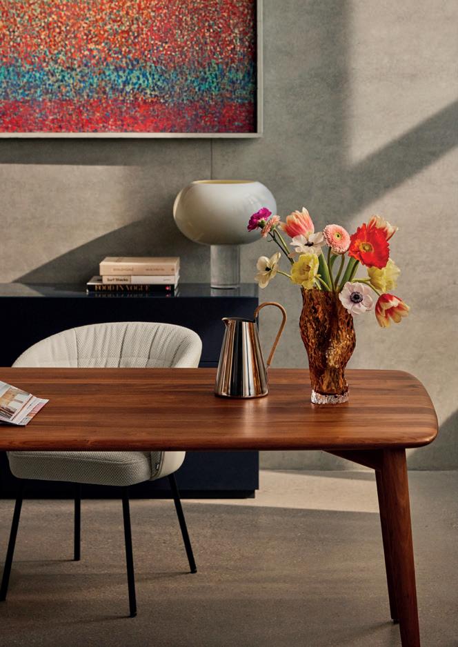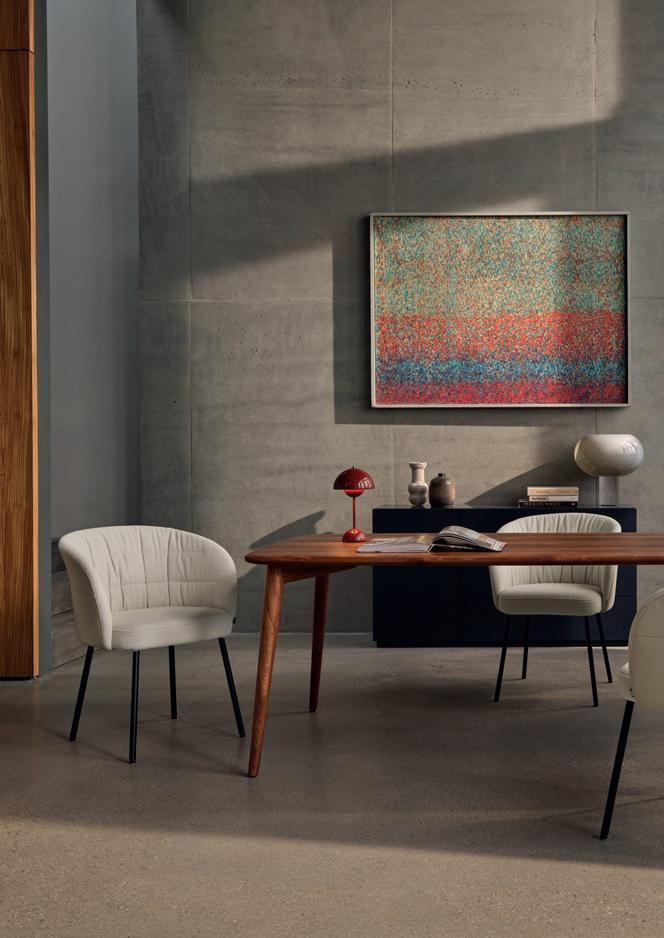 Eating together, working from home or spending cosy evenings with dimmed lighting: the dining room is the heart of the home and the central meeting place for family and friends. The Rolf Benz DINING collection combines the flexibility of a modern lifestyle with an extra touch of comfort. Everyone feels at home sitting at a spacious, natural wood table on invitingly soft chairs.