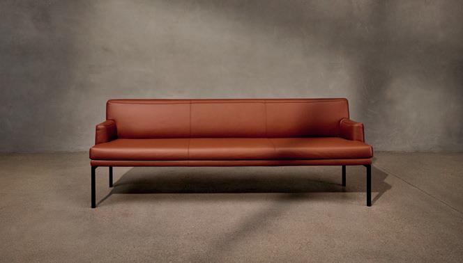 Its elegant stitching creates high-quality accents and makes all versions of this bench seat especially eye-catching. The simple, restrained design is available in four lengths (203, 223, 243 and 263 centimetres) and blends in seamlessly with any interior. The legs are available in Umbra grey, Traffic black or Silver.