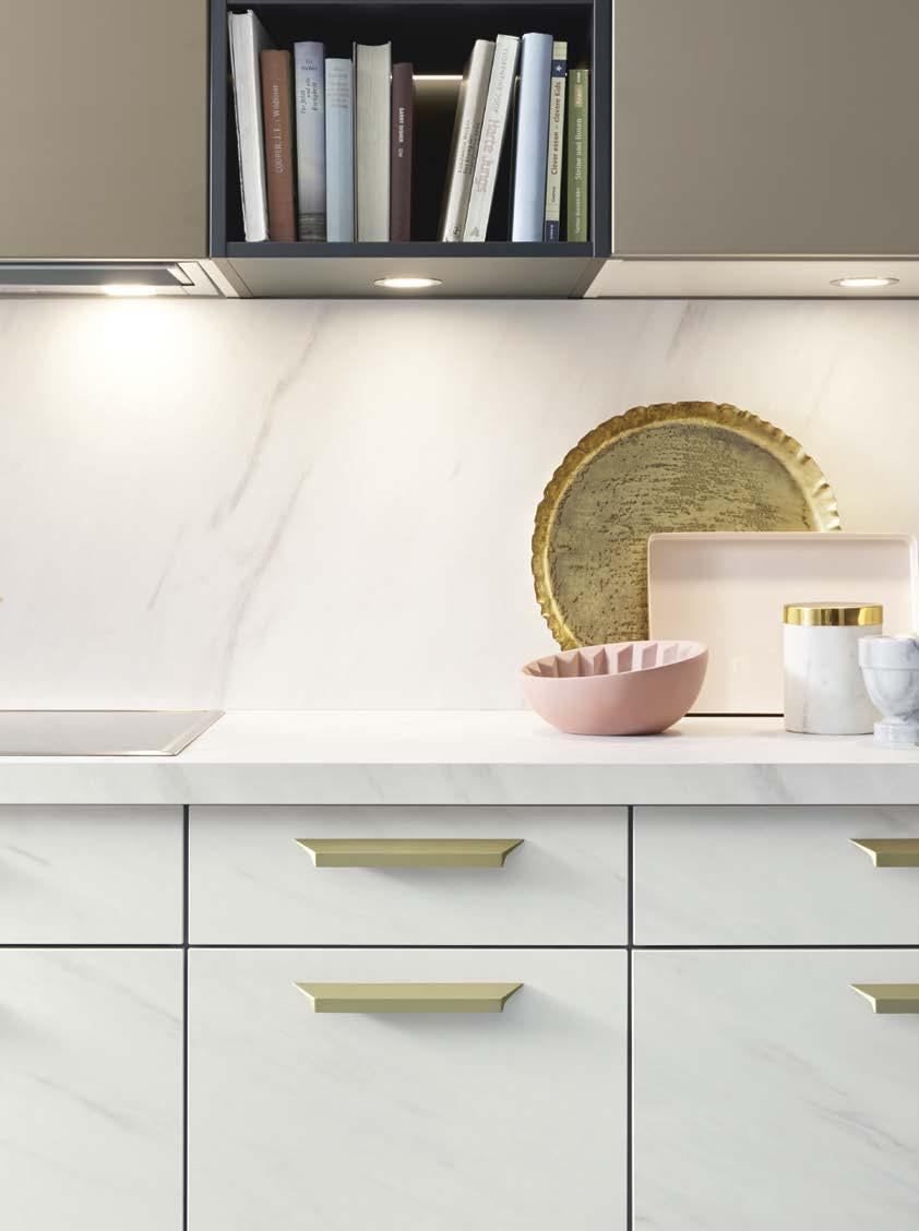 Überragende Oberflächen. Kunststoff oder Lack. Matt oder glänzend. Glatt oder strukturiert. Mit der Entscheidung für eine bestimmte Front prägen Sie den Charakter Ihrer Küche –und treffen ein echtes Statement. Damit dieses perfekt zu Ihnen passt, bieten wir Ihnen nahezu grenzenlose Farb-, Formund Materialkombinationen.