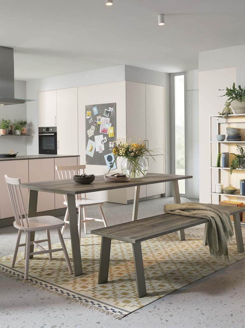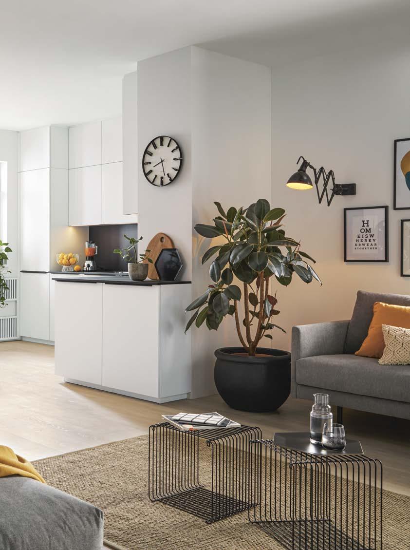 Die individuelle Traumküche hängt neben dem Geschmack auch von der Raumund Lebenssituation ab. Bei uns finden Sie alle Zutaten, um sich die ideale Lösung zusammenzustellen. Für kleine Apartments genauso wie für weitläufige Wohn-/Ess-/Kochbereiche. Auch dank passgenauer Systeme für Organisation, Stauraum und Technik sowie korrespondierendes Wohn- und Arbeitsmobiliar.