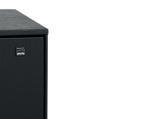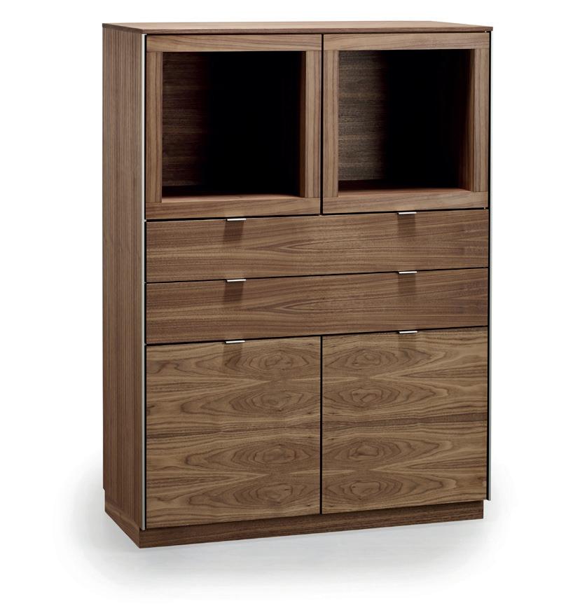 At first glance, the cabinet presents a sleek and symmetrical facade, featuring a central split rolling front. A dual-action door design adds an element of intrigue to the exterior of the cabinet, giving it a timeless and sophisticated look.