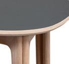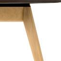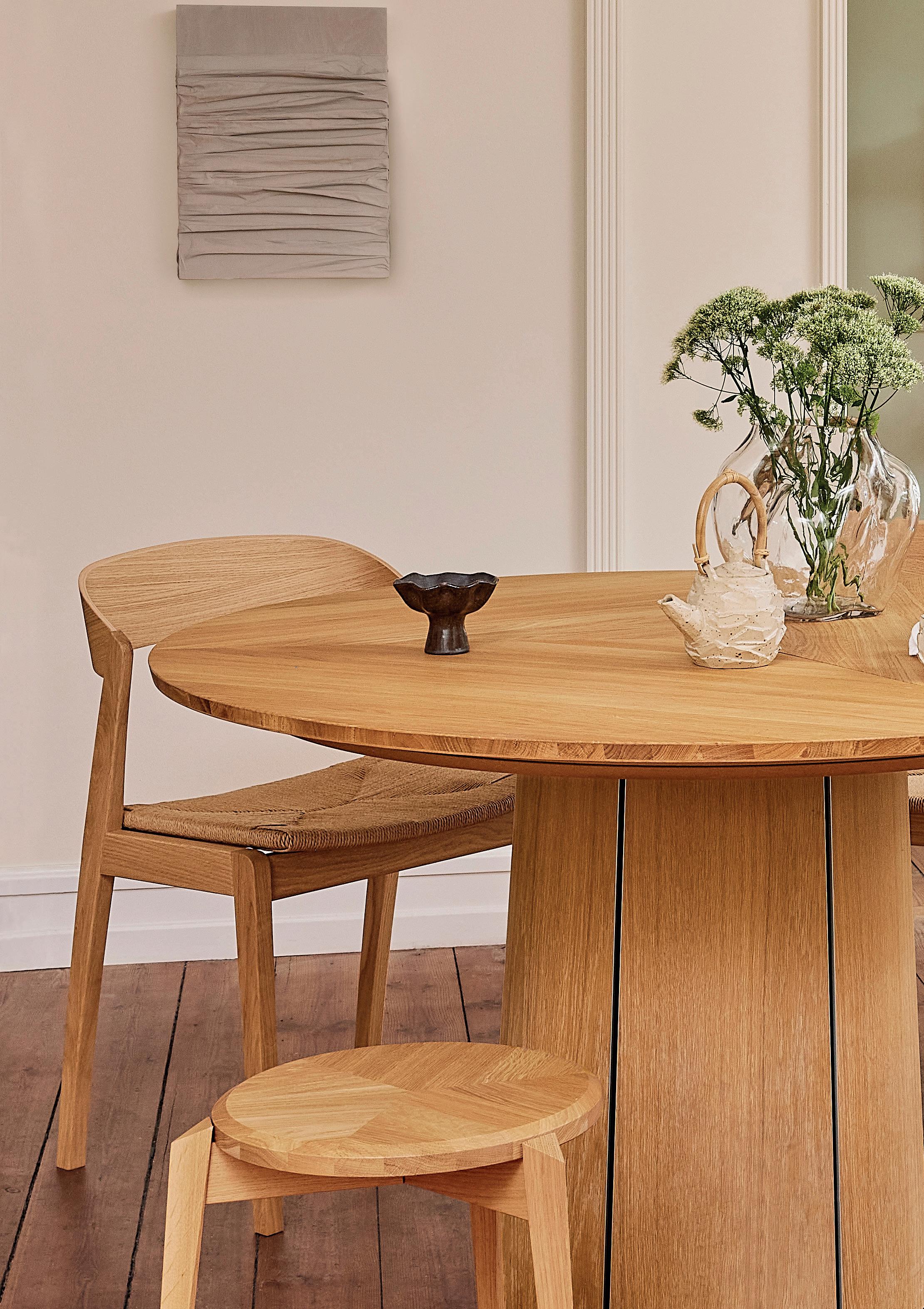 The Skovby #33 dining table is equipped with a unique extension system. By turning the turntable under the tabletop the three leaves move synchronously to a position that makes room for the extension leaves in the base. When light pressure is applied the extension leaves unfold by means of a spring placed under the triangle in the middle of the table.