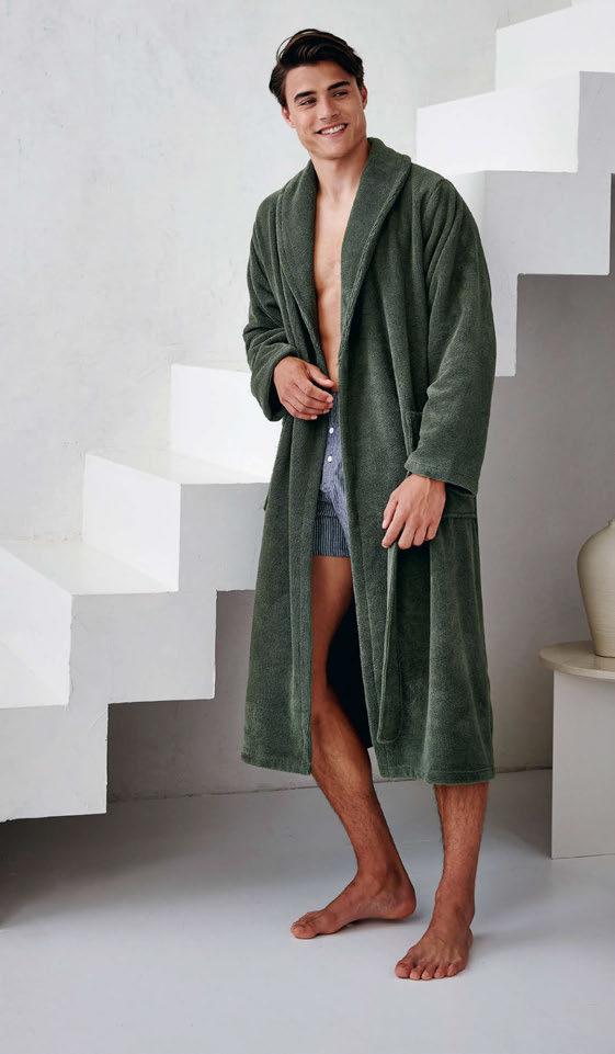 3. 7 1. & 2. Superzachte satijnen dekbedovertrek 300 count HOME 93 en HOME 94 SAGE GREEN met print en afgewerkt met bies rondom kussensloop 1-persoonsset 119,95 - 2-persoonsset 219,95 - lits-ju meauxset 239,95 - 3. PURE 10 SAGE GREEN bed spre i 180x260 - 139,95 | 260x260 - 189,95, kussensloop 60x70 - 39,95 | 40x55 - 29,95 1. 2. Badjas van zacht velours met bamboe binnenzijde voor extra draagcomfort S, M, L, XL BADJAS BEAUMONT 79,95 BADJAS BEAUMONT SAGE GREEN SAGE GREEN ANTHRACITE MAGAZINE HERFST / WINTER 2022 HOME 93 SAGE GREEN HOME 94 SAGE GREEN VERKRIJGBAAR IN DIVERSE KLEUREN