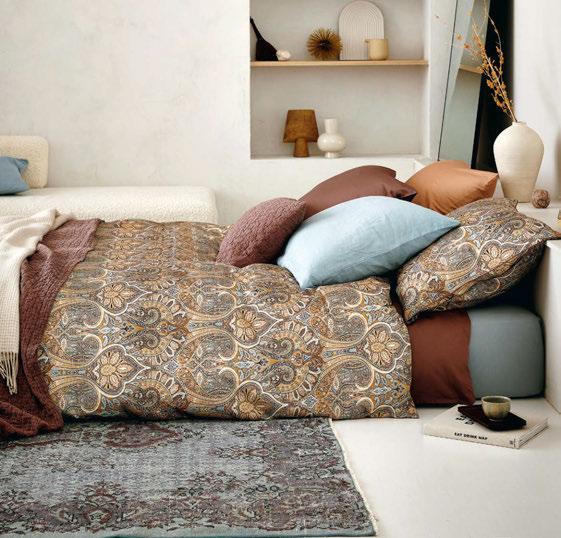 1. Dekbedovertrek SLEEPWELL CREAM TAN, PRALINE & PEARL BLUE 1-persoonsset 69,95 - 2-persoonsset 129,95 - lits-jumeauxset 139,95 2 . Warme plaid en sierkussensloop HOME 81 Gemaakt van een zachte wol melange, sprei is afgewerkt met franjes. Bedsprei 130x220 - 99,95 kussensloopje 40x55 - 39,95 8 MAGAZINE HERFST / WINTER 2022