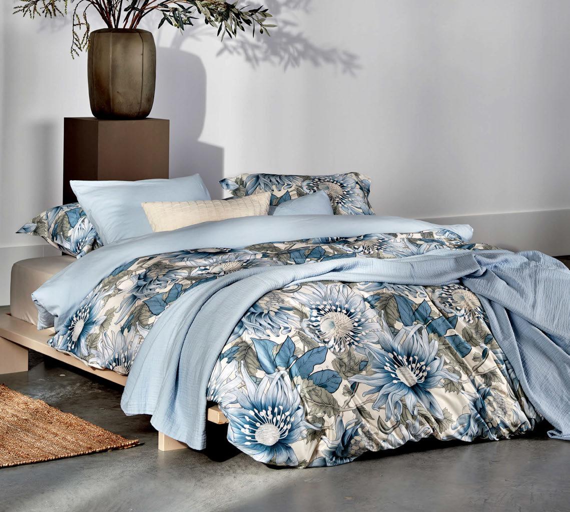 BLUE WANDER Dekbedovertrekset van 100% katoensatijn 1-persoons 89,95 | 2-persoons 169,95 lits-jumeaux 179,95 WANDER LUST
