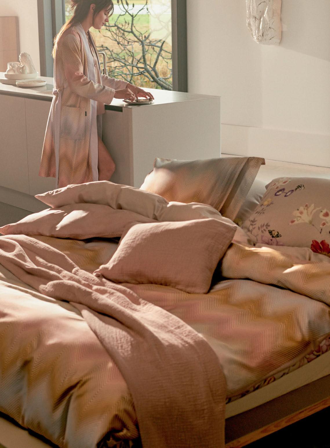Elke moment van de dag wordt een gouden uur met de warme kleuren van dekbedovertrekken ZIGGY en LINNEA.