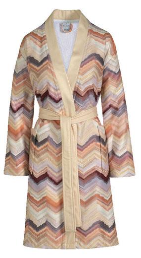 Deze mooie kimono badjas met fijne, diepe zakken blijft verrassen dankzij het golvende zigzagpatroon. Door de blend van bamboe, katoen en polyester valt badjas