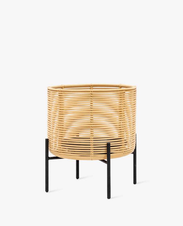 MATERIALS black HDPE wicker basket black power coated steel base