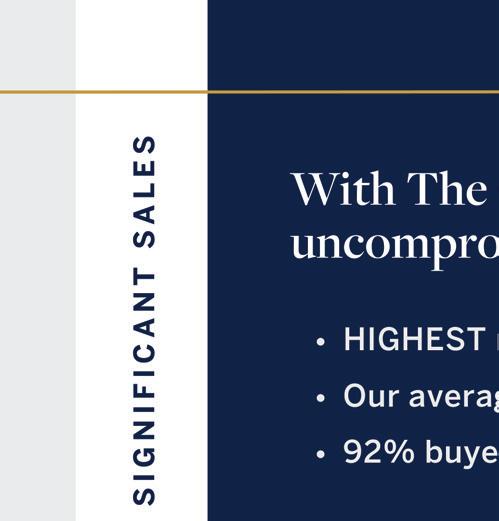 MARK KENNEDY MARK KENNEDY EXCLUSIVE LISTINGS MARK.KENNEDY@THEAGENCYRE.COM 925.321.5296 | LIC. #01881234 1421 HARLAN DRIVE, DANVILLE 4 BEDS, 3 BATHS, 2333 SQ. FT, 9100 SQ. FT. LOT LISTED FOR $1,989,000 | SOLD FOR $1,930,000 70 LA VELLE COURT, DANVILLE 4 BEDS, 2 BATHS, 1853 SQ.FT, 10,000 SQ. FT. LOT LISTED FOR $1,849,000 | SOLD FOR $1,800,000 1011 DEL RIO WAY, MORAGA 4 BEDS, 3 BATHS, 2427 SQ.FT, 10,000 SQ. FT. LOT LISTED FOR $2,195,000 | SOLD FOR $2,500,000 3273 SARATOGA COURT, LIVERMORE 5 BEDS, 4.5 BATHS, 4479 SQ.FT, 17,709 SQ. FT. LOT SOLD FOR $2,675,000 | REPRESENTED BUYERS JUST SOLD JUST SOLD JUST SOLD JUST SOLD ©2021 UMRO Realty Corp., dba The Agency. Registered service marks; all rights reserved. The Agency fully supports the Equal Housing Opportunity laws. The Agency, its affiliates, subsidiaries, and franchises make no representations, warranties, or guaranties as to the accuracy of the information contained herein, including square footage, lot size or other information concerning the condition, suitability or features of the property. All material is intended for informational purposes only and has been obtained from public records, MLS, or other sources believed to be reliable, but not verified. You should conduct a careful, independent investigation of the information and property, and consult with appropriate professionals, such as appraisers, architects, civil engineers, etc. If your property is listed with a real estate broker, please disregard. We do not intend to solicit the offerings of other real estate brokers. We are happy to work with them and cooperate fully. CalDRE #01904054. Information taken from the MLS as of 1/1/22 and has not been verified by The Agency, Agent or MLS. Properties represent a compilation of listings from various brokerage firms and are not always listed or sold by the office, broker or agent presenting the information. The material may be subject to errors, omissions, or changes regarding price, condition, description of property, accuracy of prior sale, or withdrawal, without notice. THEAGENCYRE.COM + LISTINGS HAVE RECEIVED $4.5 MILLION ABOVE ASKING PRICE IN 2022 8
