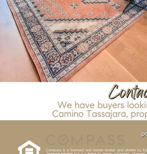 Compass is a licensed real estate broker in California and abides by Equal Housing Opportunity laws. All material presented herein is intended for informational purposes only. Information is compiled from sources deemed reliable but is subject to errors, omissions, changes in price, condition, sale, or withdrawal without notice. No statement is made as to accuracy of any description. All measurements and square footages are approximate. This is not intended to solicit property already listed. Nothing herein shall be construed as legal, accounting or other professional advice outside the realm of real estate brokerage. 271 Arency Court, Danville 4 BD | 3 BA | 3348 SF | .46 Acre Lot Offered at $1,790,000 NEW 9050 Highland Road, Livermore 4 BD | 2.5 BA | 3484 SF | 18.13 Acre Lot Offered at $2,289,000 115 Parkhaven Drive, Danville 5 BD | 3 BA | 2807 SF | .15 Acre Lot Offered at $2,049,000 NEW NEW 29