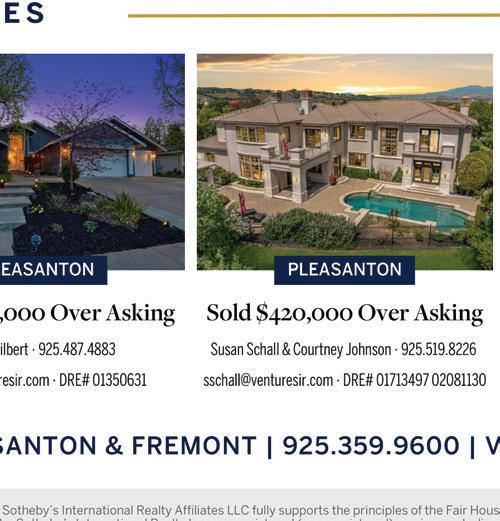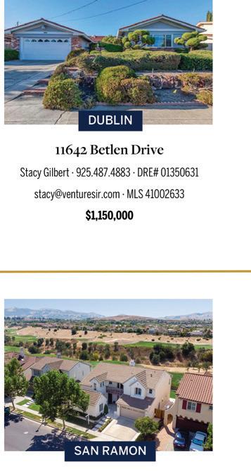 Megan Carr Realtor 925.409.4192 megan@artistreere.com DRE 02143565 Rebecca Marino Realtor 925.216.2279 rebecca@artistreere.com DRE 02167718 Erik Milham Realtor 925.680.0808 erik@artistreere.com DRE 01299643 Thomas Tellner Realtor 408.582.2730 thomas@artistreere.com DRE 02180365 Monica Timms Realtor Associate Founder 925.639.0901 Monica@MonicaTimms.com DRE 01270605 Ruhi Alikhan Broker Associate Founder 408-582-3202/925.361.7449 ruhirealestategroup@gmail.com DRE 01423713 Real Estate & Design, Top 1% Nationwide, WSJ Top 100, 2010—2021 Presidents Circle, Realtrends award winners, new construction, 1031 exchanges, relocation. Lic #02014153 31133 Alvarado Niles Rd, Union City 2 bed | 2 bath Located near 880 fwy | Walking distance to Casa Verde Park and Union Landing Shopping Center Offered at $589,000 5129 Rowan Dr, San Ramon 3 bed | 3 bath | 2,152 sqft | Coming Soon Built in 2016 meticulously maintained Stunning with modern finishes Call for Details 3753 Central Prkwy Dublin 4 bed | 2 full bath 2 half bath | 2,383 sqft Fabulous location close to schools and Bart Amenities: Pool, club house & billiards room Offered at $1,159,000 153 Marks Road, Alamo 3 bed | 1 bath | 1,407 sqft | 47,480 sqft lot As-is sale with special view lot | Close top schools Build your dream home in this idyllic setting | Over 1 acre, views of Mt. Diablo and surrounding hills | Structure taken to the studs | Plans available Offered at $1,899,999 371 Pantano Cir, Pacheco 3 bed | 2.5 bath | 1,426 sqft Fabulous amenities | 20 minutes away from San Francisco | Perfect starter home Offered at $529,000