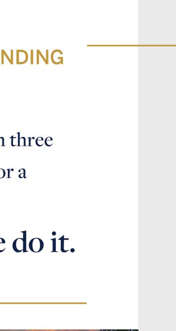 • Trusted financial partner for over 150 years • Major originator of Jumbo Loans • Portfolio lender • Exceptional customer service • Dedicated to building healthy communities ©2022 MUFG Union Bank, N.A. All rights reserved. Member FDIC. Union Bank is a registered trademark and brand name of MUFG Union Bank, N.A. unionbank.com Loans subject to credit and collateral approval. Not all loan programs are available in all states for all loan amounts. Restrictions may apply. Terms and conditions subject to change. 1 Minimum credit score and reserve requirements apply and may impact the amount that can be borrowed and the interest rate/APR for which your client is eligible. Consult your Union Bank Mortgage Consultant for details.