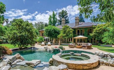 with fruit trees below the pool area. The areas are fenced and gated. This is