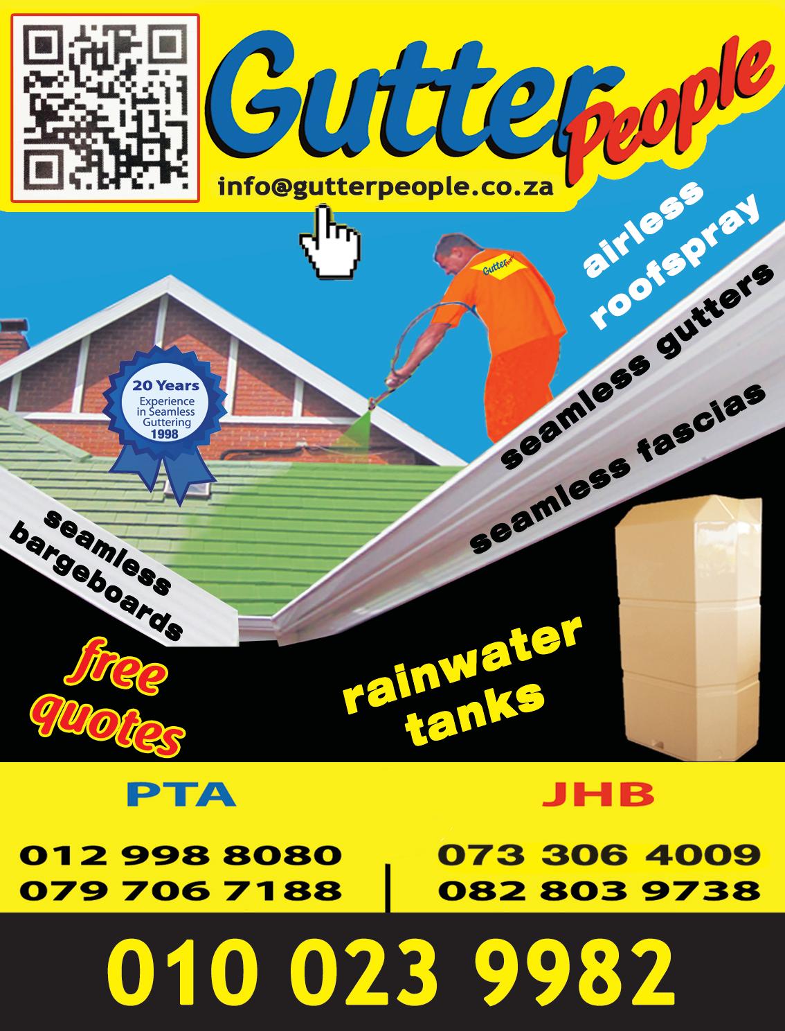 PRETORIA • 7 TO ADVERTISE PHONE 0861 11 4663 012 348 3336 083 250 1804 admin@bathroomrenovations.co.za www.bathroomrenovations.co.za WE CREATE EXQUISITE BATHROOMS & KITCHENS Our experienced, registered team is owner supervised from start to finish. We remove rubble, ensuring your home stays clean throughout the process. Workmanship guaranteed. Fall in love with your home all over again RENOVATE NOW! Office 012 065 0288 / 7 Nico 082 969 2809 nico@nnmc.co.za www.nnmc.co.za BEST QUALITY CARPORTS AND STEEL CONSTRUCTION IN ALL SHAPES & SIZES ATTRACTIVE STYLISH FUNCTIONAL STEEL SHEDS • CUSTOM MADE CARPORTS • PATIO ROOFS 087 256 6999 • 0861 011 022 info@thegutterman.co.za l www.thegutterman.co.za (PTY) LTD Quality Gutter Solutions Complete seamless guttering solution manufactured to your specifications. Full integrated rainwater harvesting system or as municipal bac CALL US PROTECT YOUR HOME from water damage. Install new gutters now! Call us today for your WINTER SPECIALS
