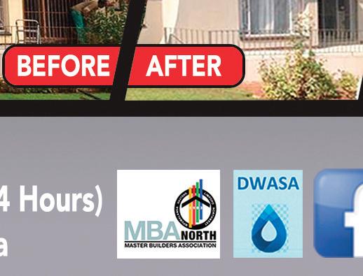 TO ADVERTISE PHONE 0861 11 4663 No maintenance l Quality guaranteed l Various colours available Residential and Commercial l We also do carports FREE QUOTES 066 479 2314 PTA 012 542 6112 / 3 JHB 011 656 7004 suntek66@icloud.com www.suntekawnings.co..za BESKERM JOU HUIS WATERPROOF YOUR HOME NOW SPECIALIZING IN: ■ Waterproofing of any low pitched & pitched roof. (tile, concrete, IBR, corrugated steel) ■ Waterproofing of balconies ■ Roof & wall painting ■ Harvey Tile roofing ■ Damp proofing ■ Fascia boards ■ Box gutters 012 546 6013 Office 083 324 2383 Hendrew absolutewproofing@telkomsa.net www.absolutewaterproofing.co.za AFTER BEFORE