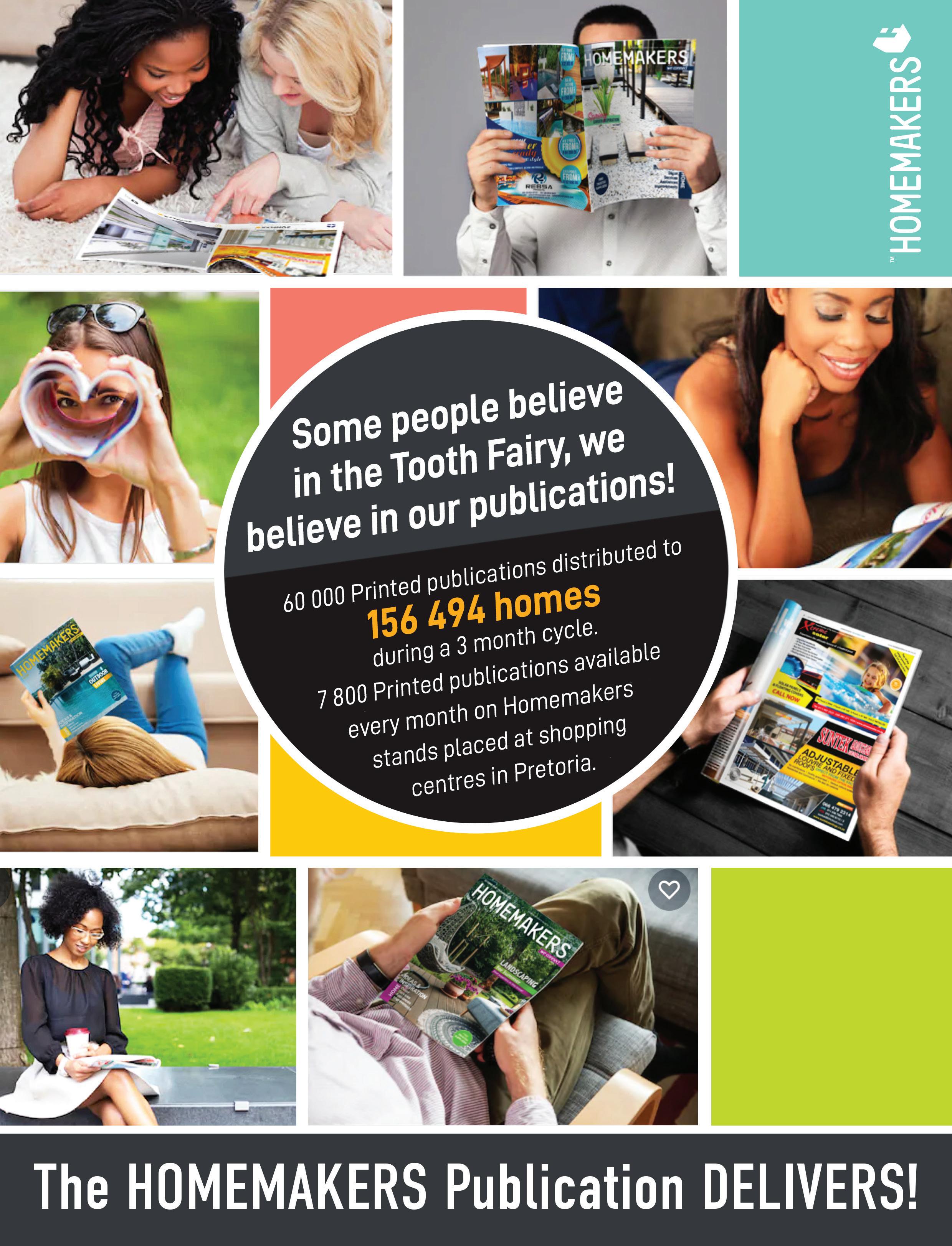 HOMEMAKERS knows how to get all the clicks. ADVERTISE with us and watch them chase you whether your focus is Get a quote today! Print Digital Events info@homemakers-sa.co.za | 086 111 4663 www.homemakersonline.co.za Be a CLICK-MAGNET